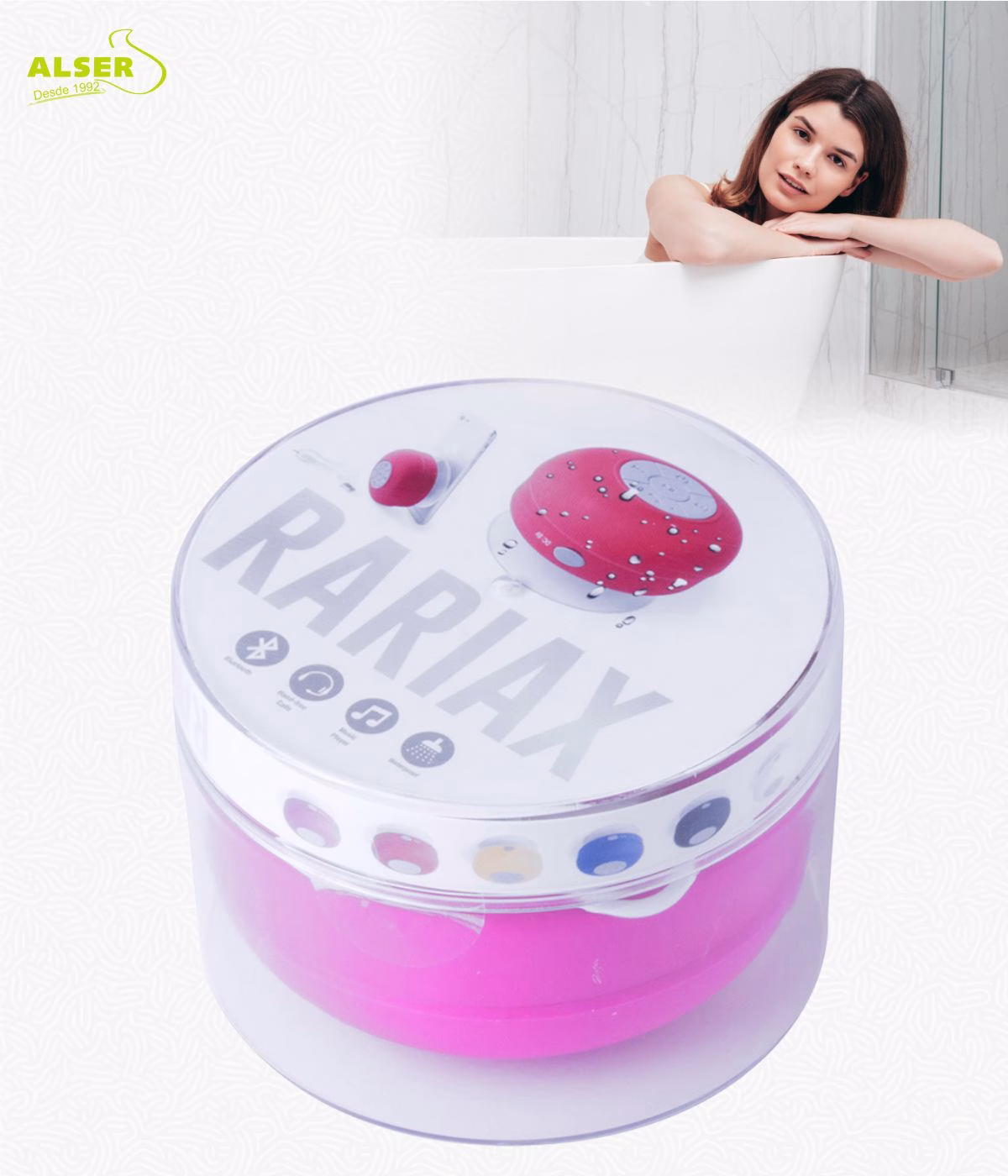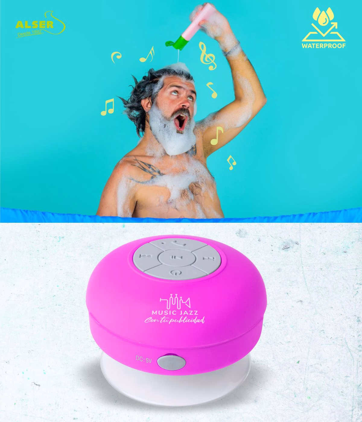 Desde fabricantes de jabones y accesorios de baño hasta tiendas de gadgets tecnológicos y organizadores de eventos, este altavoz bluetooth es perfecto para cualquier tipo de promoción. Su capacidad para ser un artículo diario y funcional lo convierte en una herramienta de publicidad constante. Además, su personalización con tampografía asegura que tu logo esté siempre en primer plano.