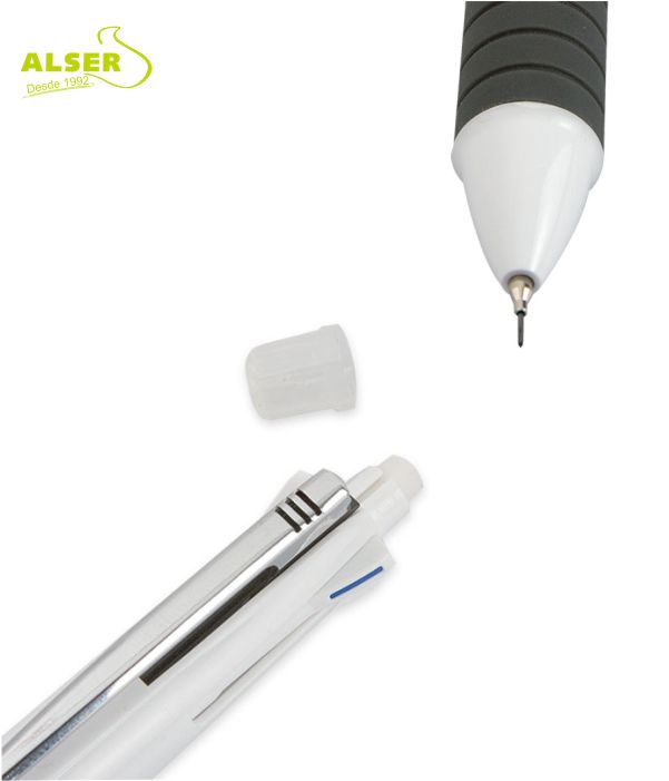 Sorprenda a sus clientes y trabajadores con el bolígrafo cuatro tintas, portaminas y goma.