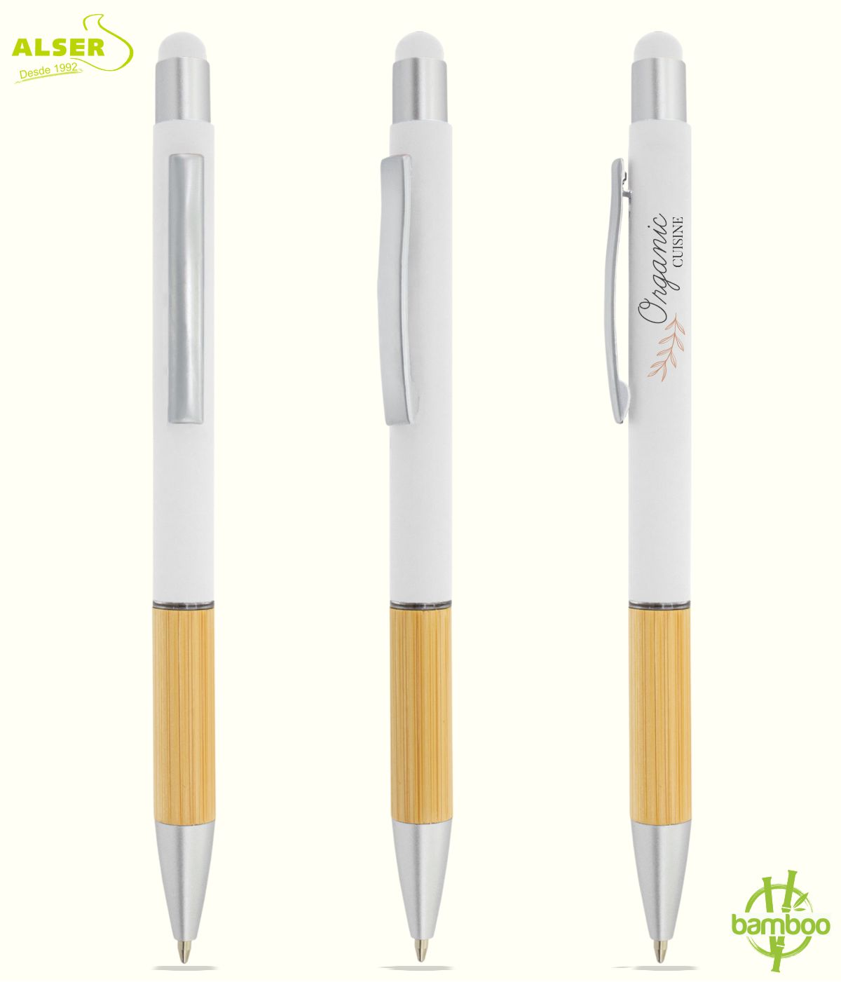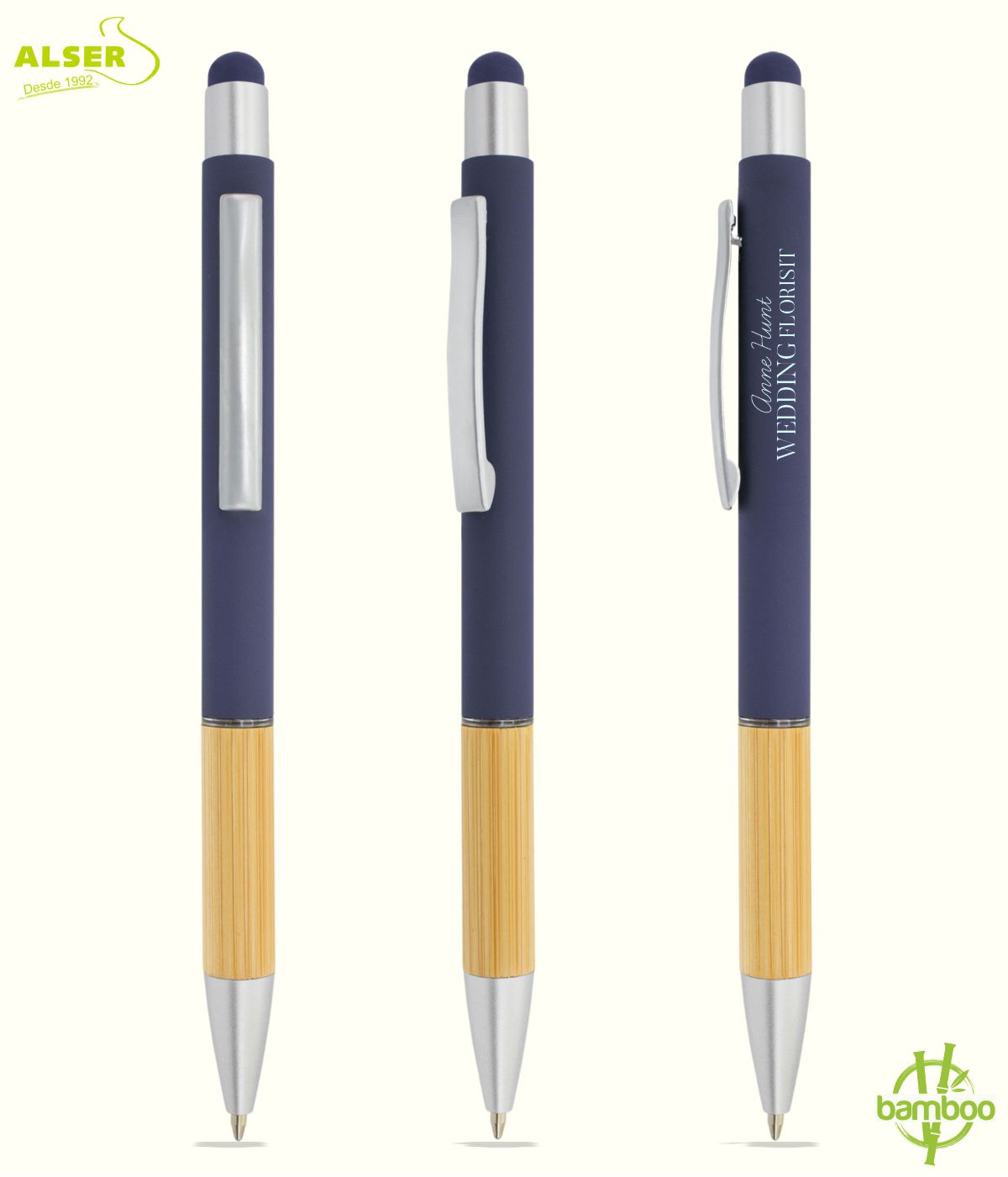 porque lo coges y no quieres soltarlo, porque pasa del papel a la pantalla sin esfuerzo, porque el tacto soft engancha y el bambú le da alma. Nos gusta porque no es solo un bolígrafo, es uno de esos objetos cotidianos que hacen que tu marca esté presente sin molestar, acompañando el día a día con elegancia, utilidad y un punto ecológico que siempre suma.