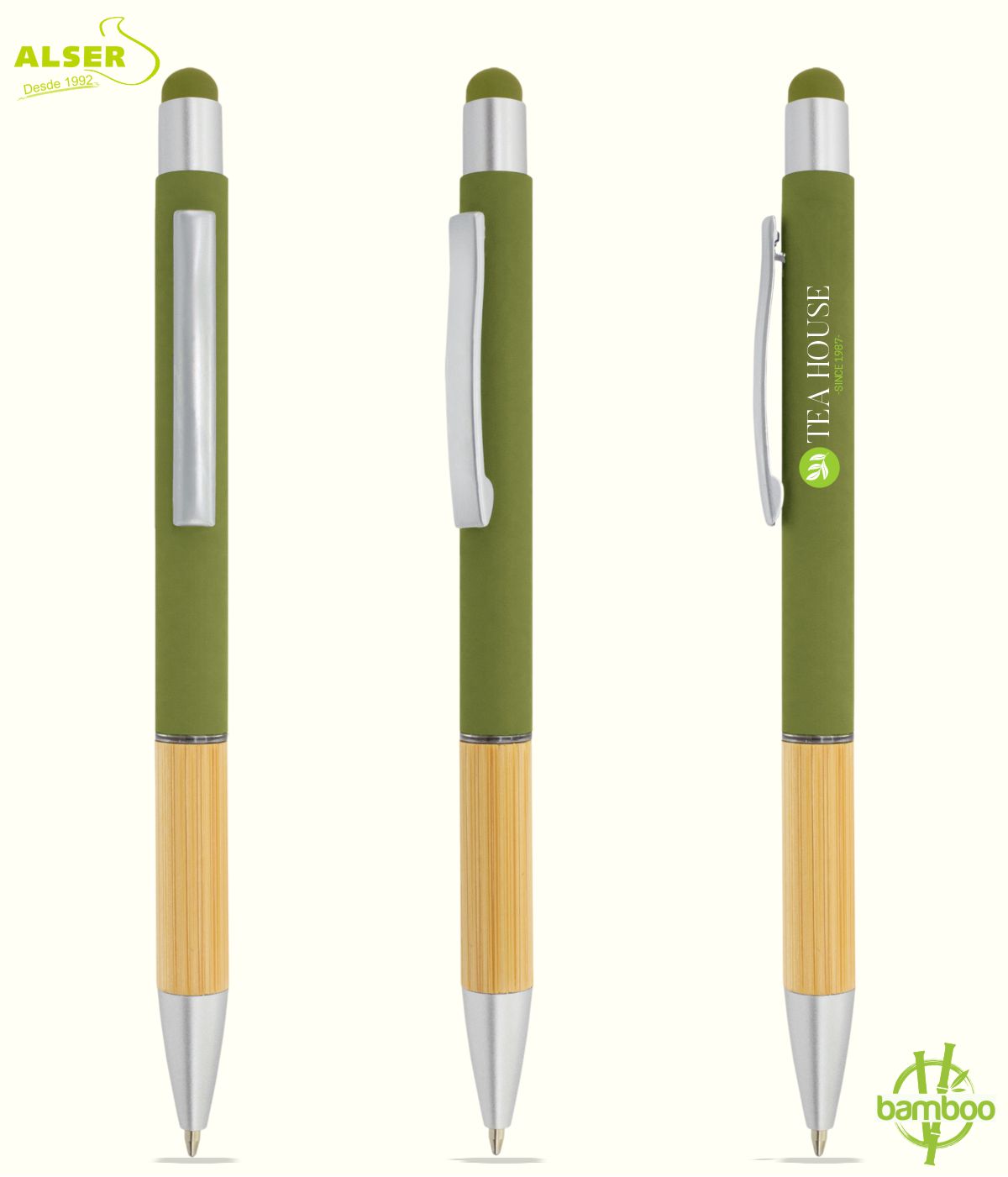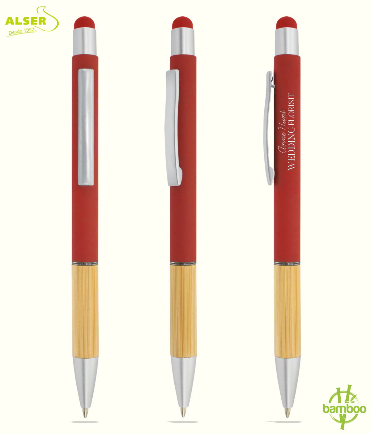 Este bolígrafo bambú con punta soft para pantallas no se queda quieto. Va de reunión en reunión, pasa por manos distintas y se cuela en bolsos, mochilas y escritorios. Y ahí es donde tu marca entra en juego.