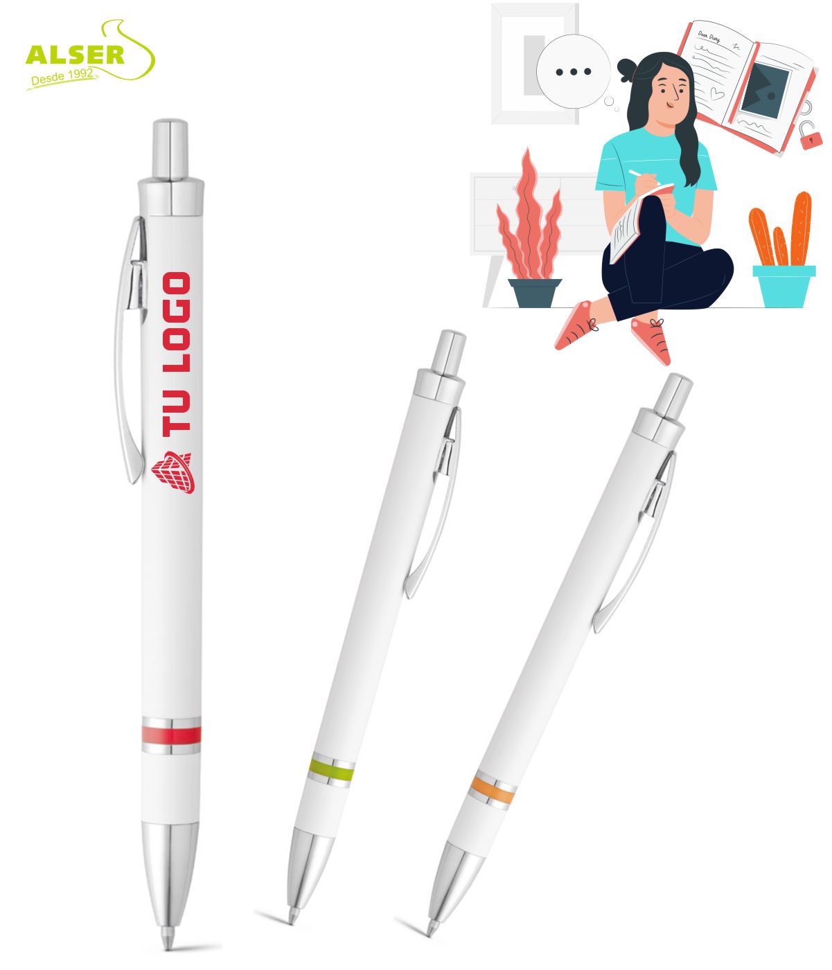 Bolígrafo blanco con detalle en color
