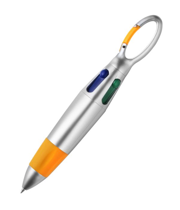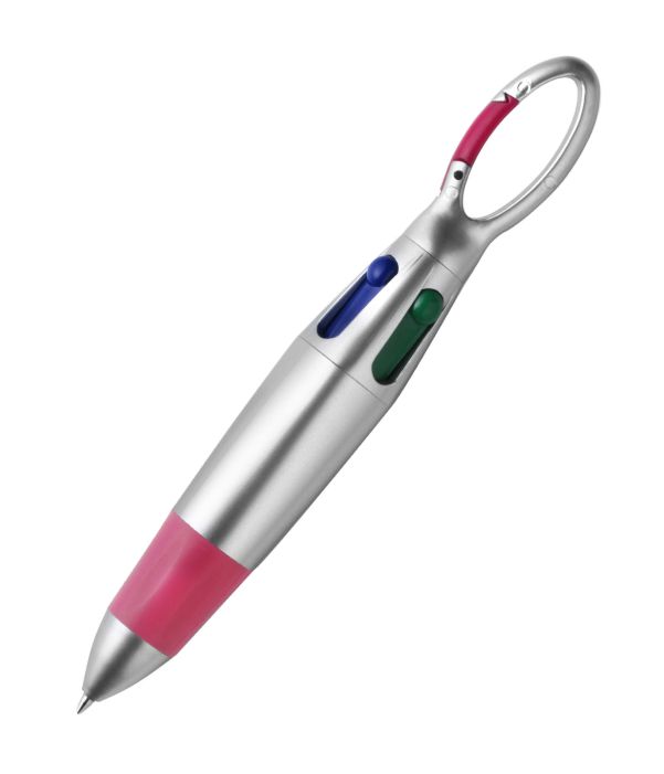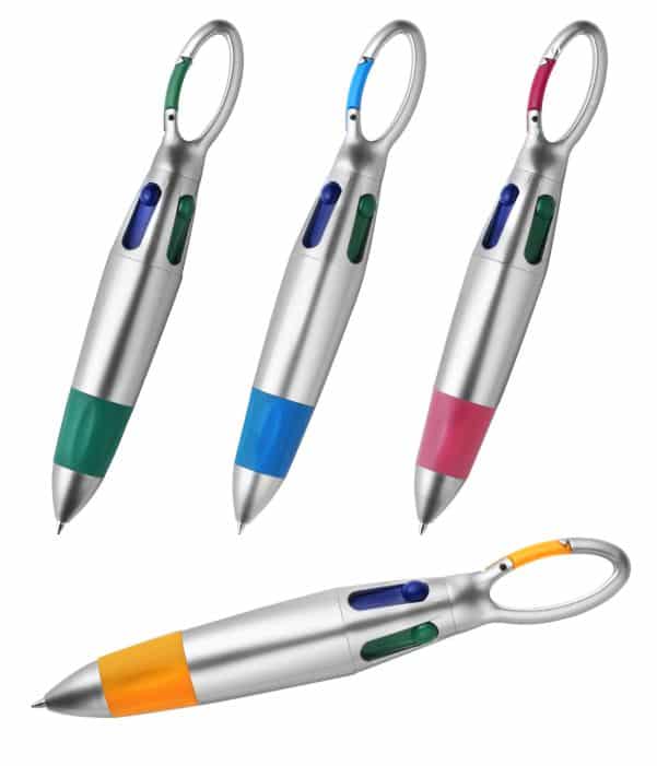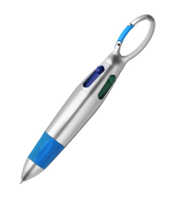 Bolígrafo con mosqueton y 4 colores que no perderas al poder llevarlo prendido en cualquier parte!!