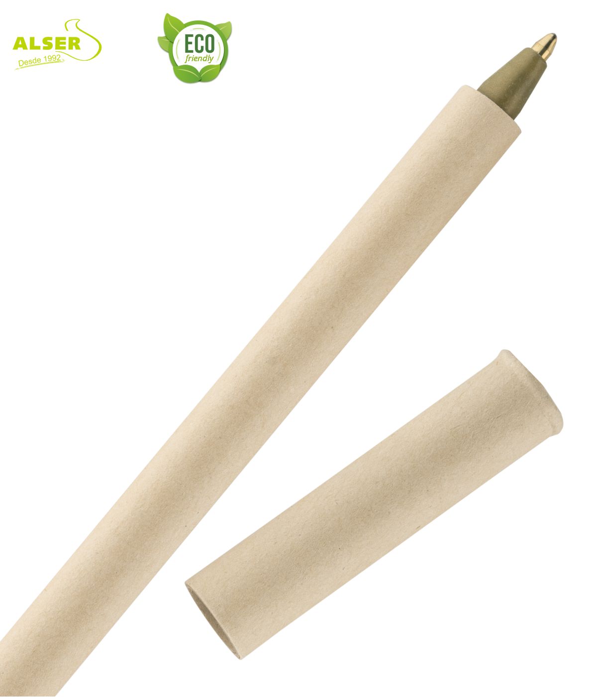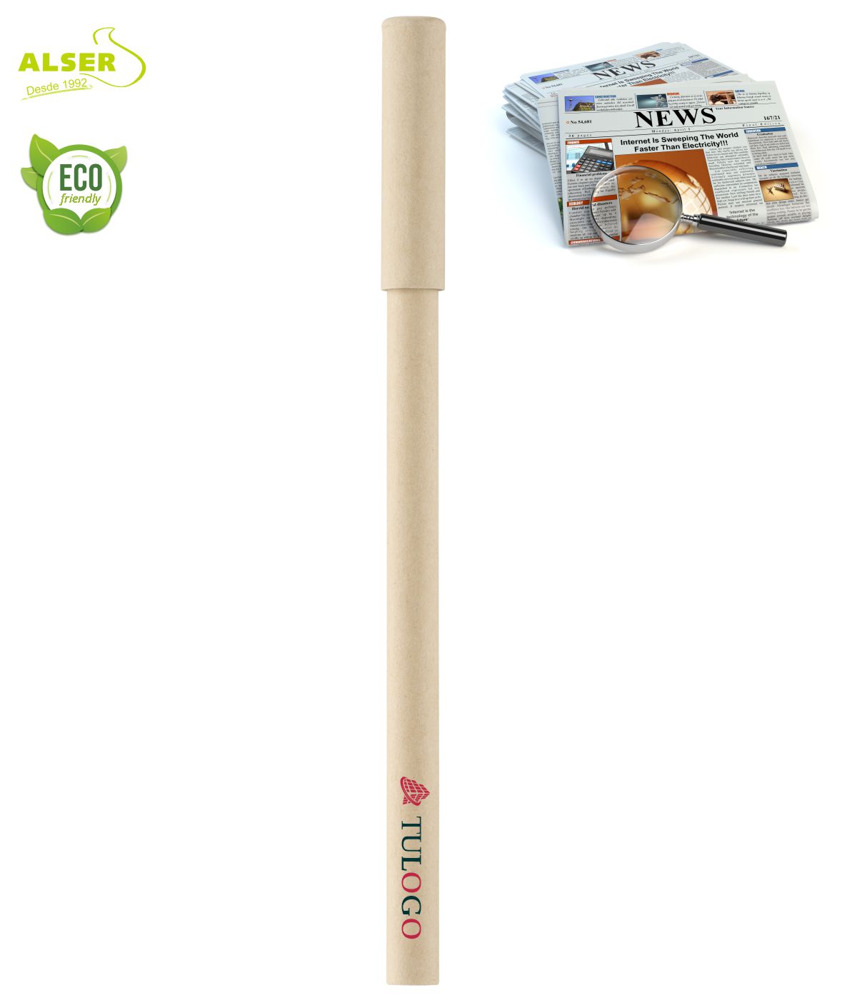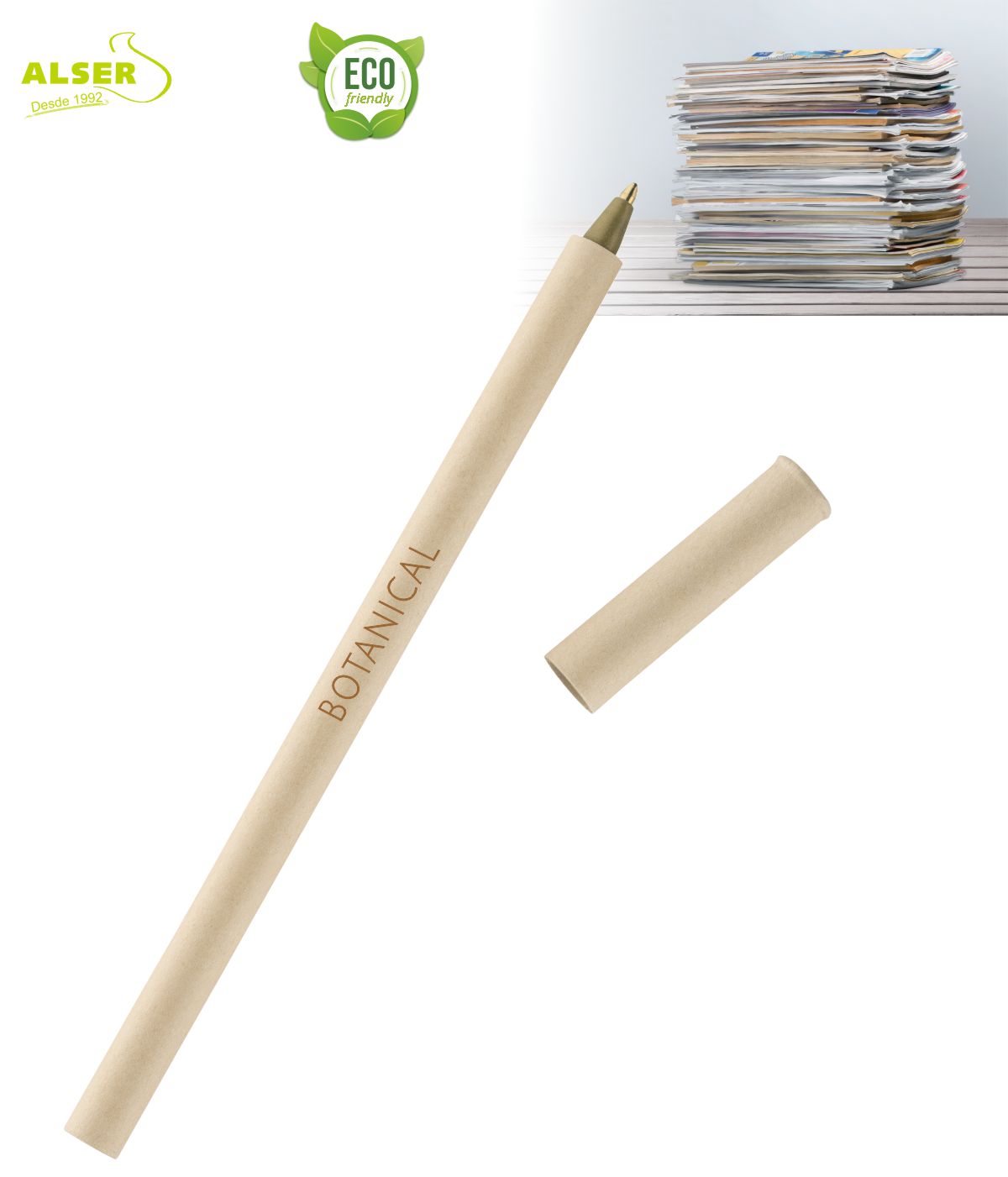 Amigo del medio ambiente, este bolígrafo está fabricado en papel reciclado y papel kraft.