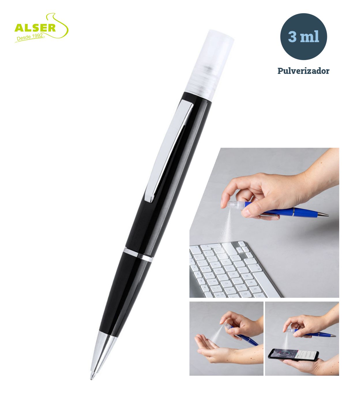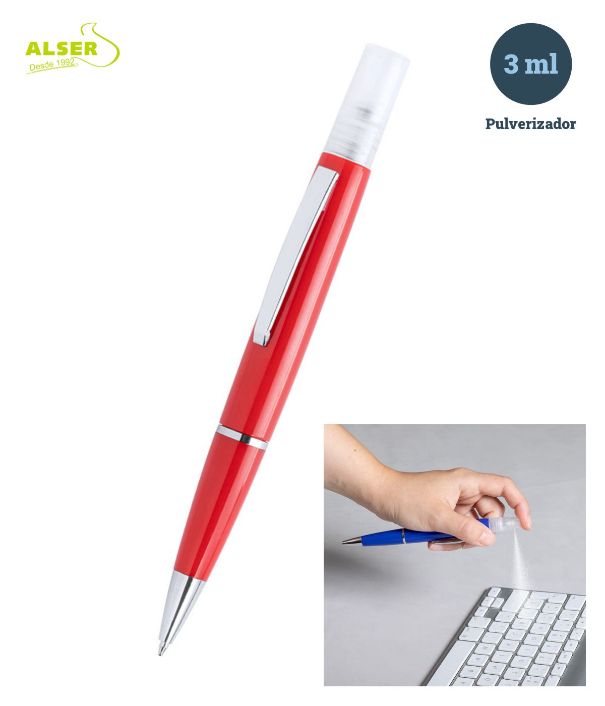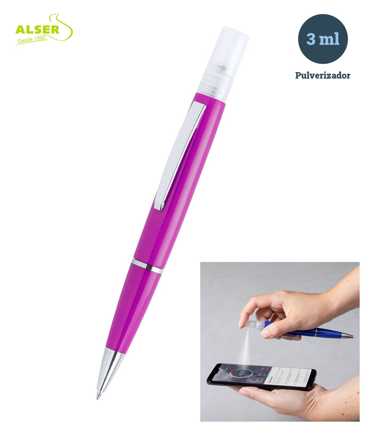bolígrafo recargable con spray higienizante