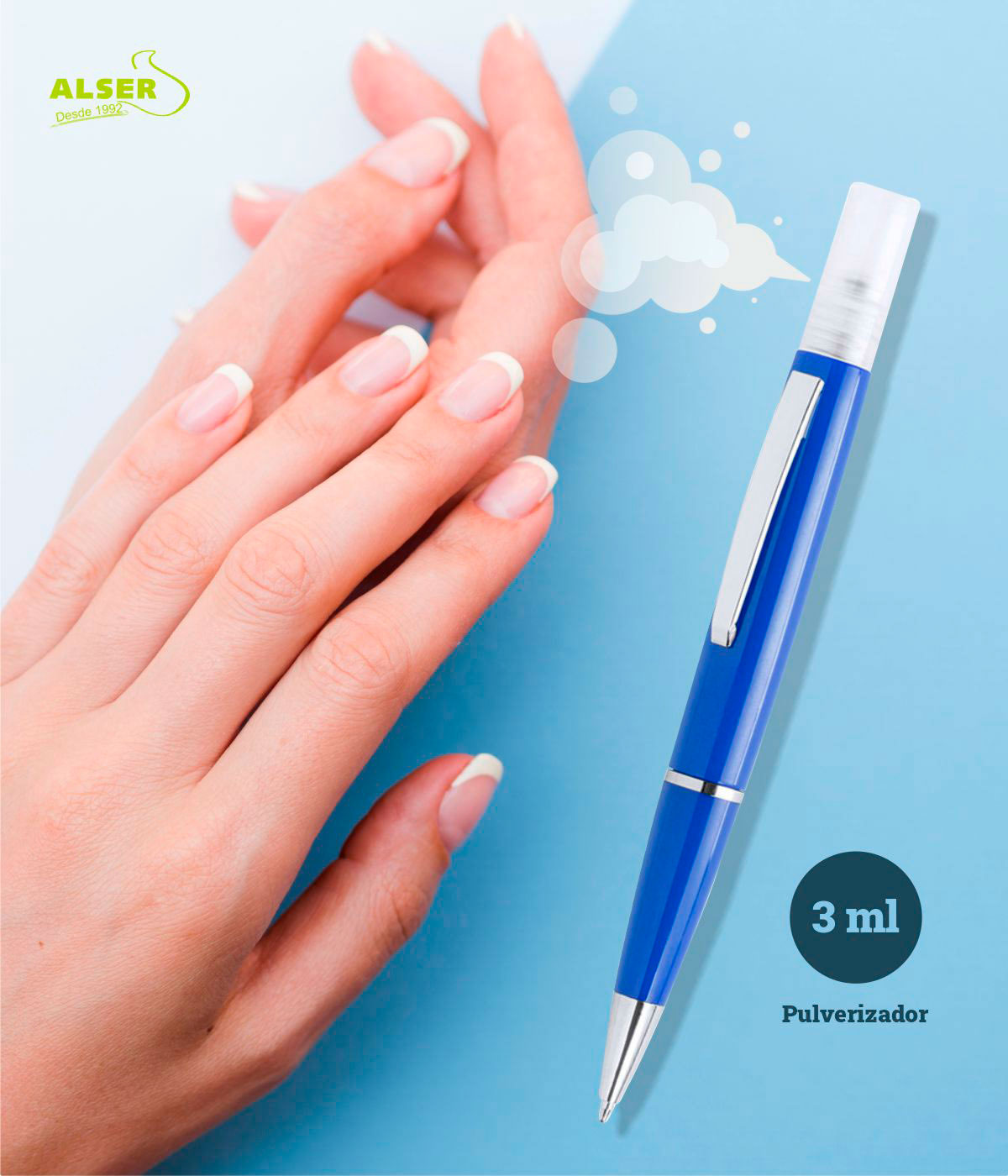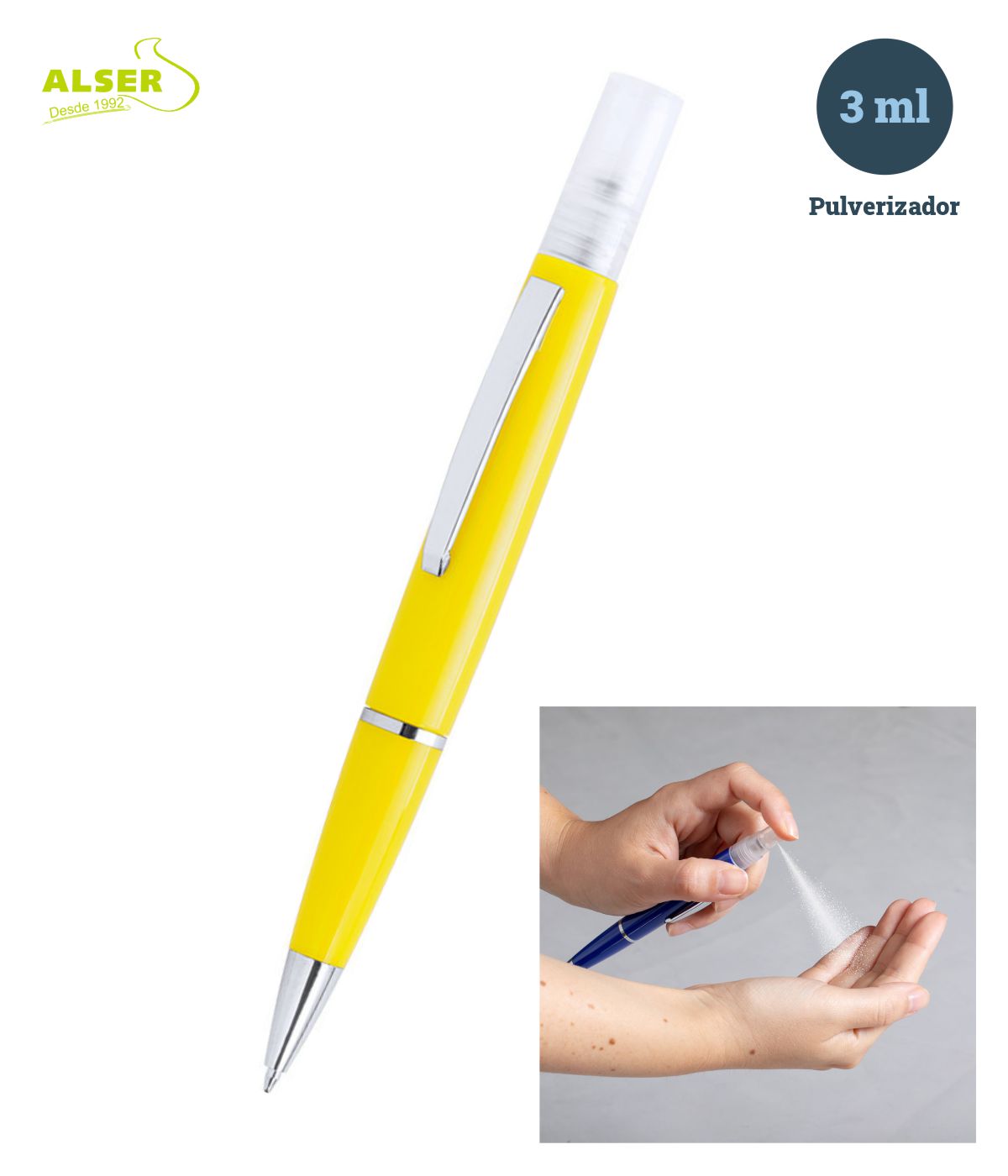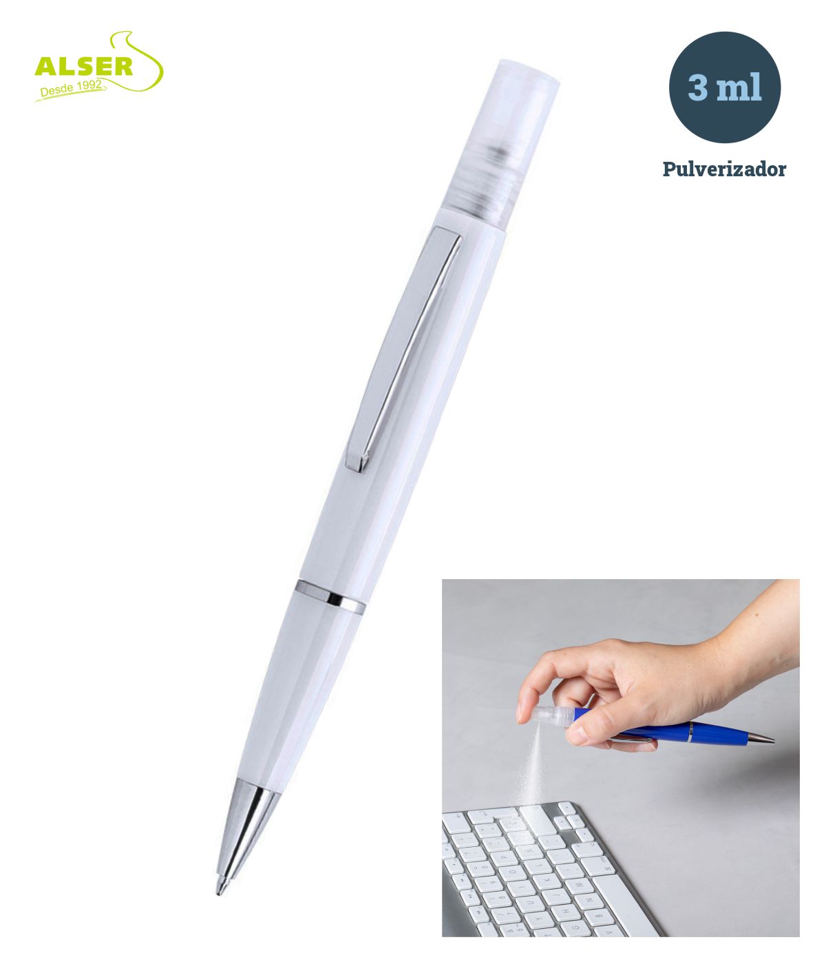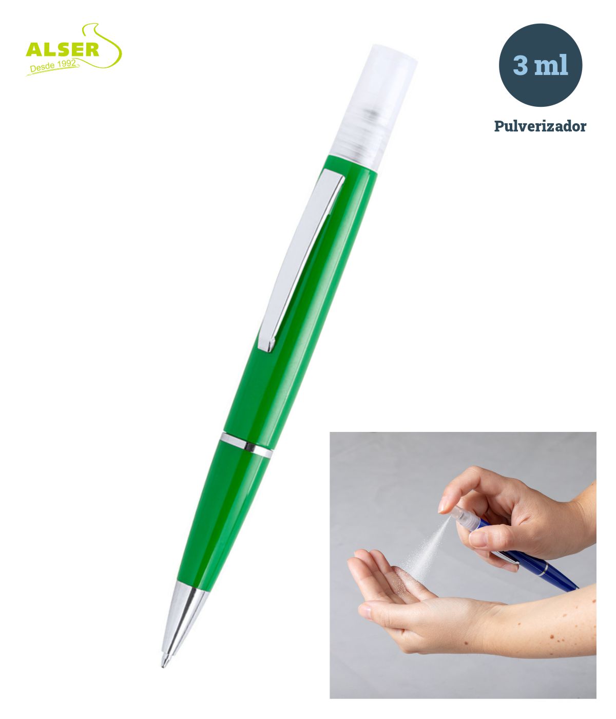 bolígrafo recargable con spray higienizante