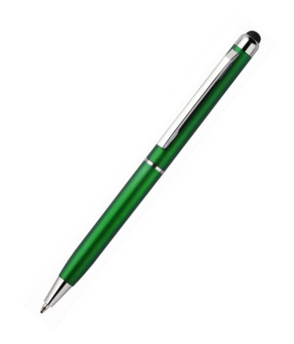 Bolígrafo de propaganda que incorpora en la parte superior punta touch de caucho para manejo de pantallas táctiles.