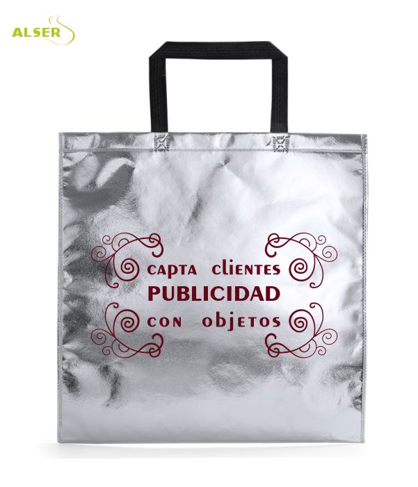 ¿El secreto? El material Non Woven laminado. Le da ese toque metalizado que resiste, que no se raya fácilmente y que mantiene el brillo. Es la mezcla perfecta entre estética y utilidad, entre lo promocional y lo bonito.