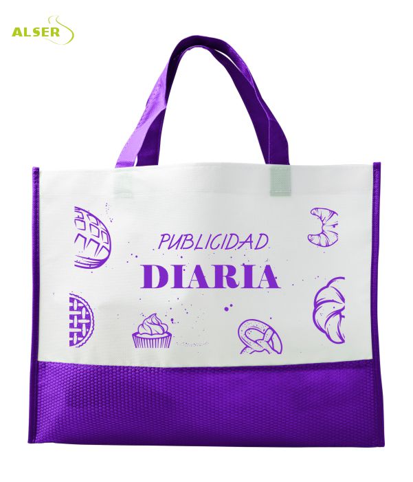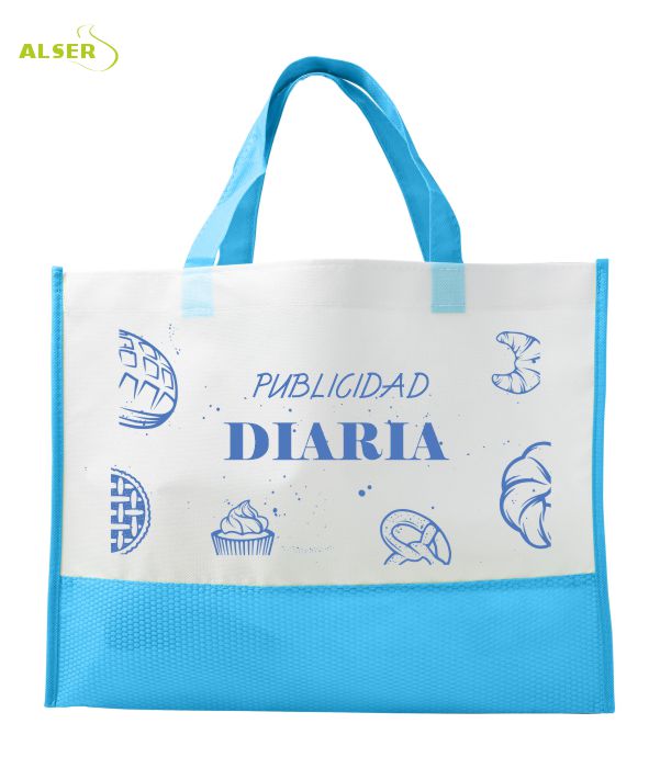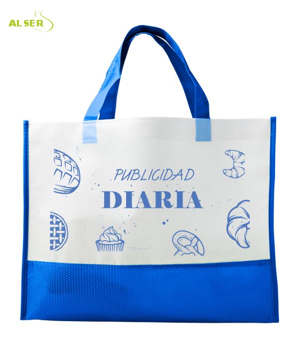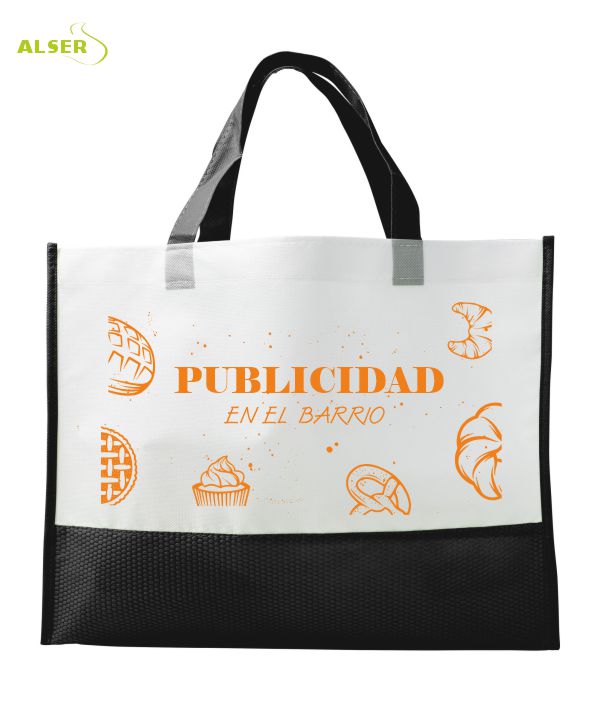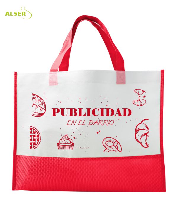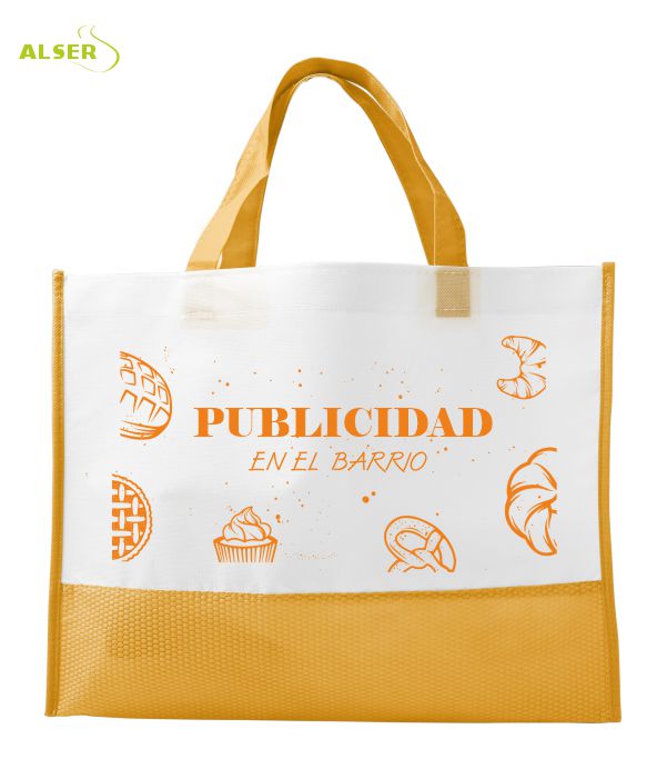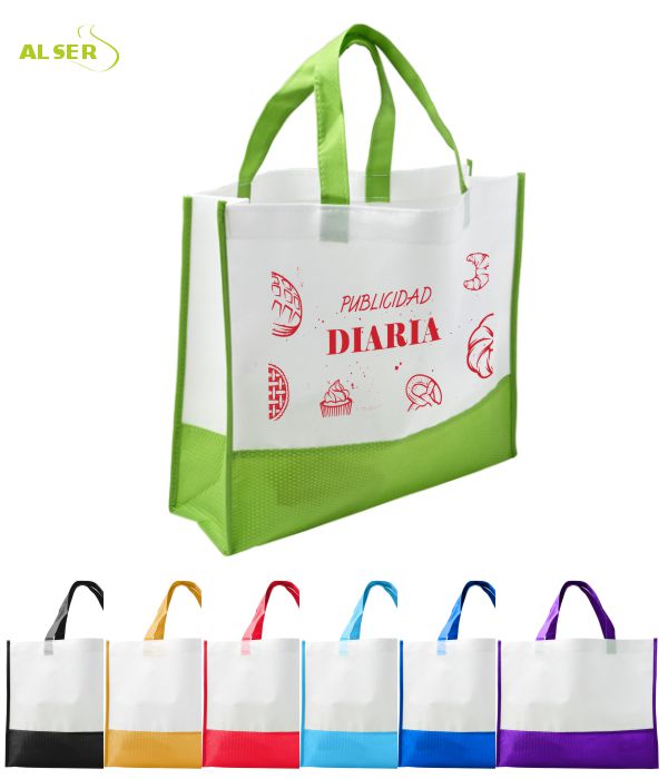 • Desenfadada: Su estilo bicolor de alegres colores, con su ribete y asas a juego la hace una bolsa alegre en la que su publicidad destacará sobre el fondo blanco de la bolsa.