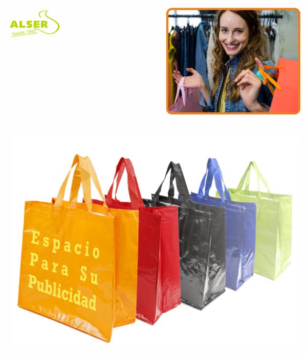 • Resistente: Fabricada en polipropileno woven de 130 grs. Brillante y muy fuerte. Soporta más de 20 Kg. de peso.
