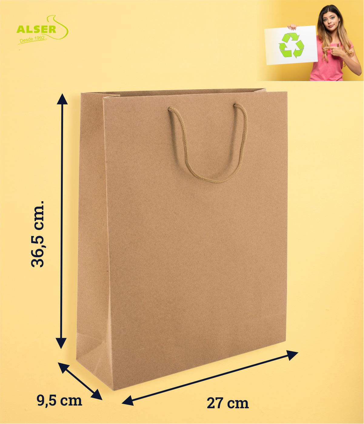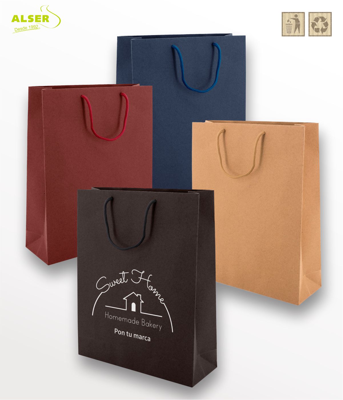 Si vendes productos voluminosos como ropa, comida, o regalos, esta bolsa de cartón vertical, y con asas de cordón, es el embalaje perfecto para entregar tus productos.