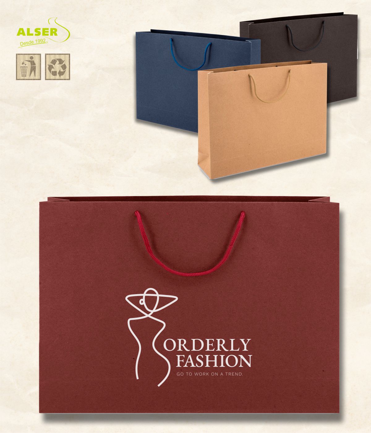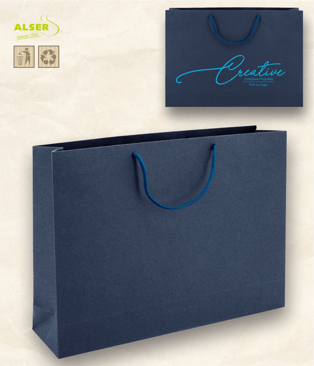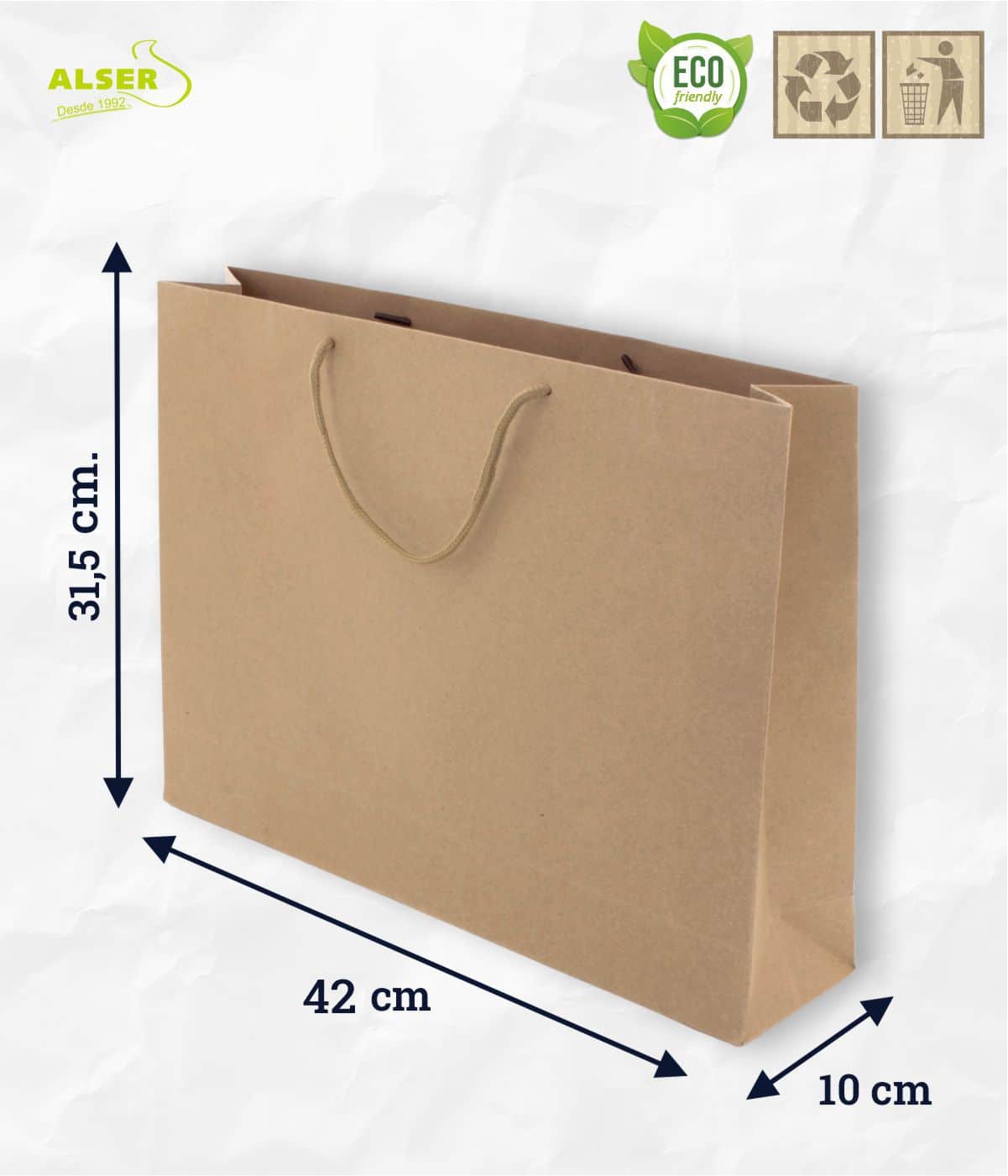 Si vendes productos voluminosos como ropa, comida, o regalos, esta bolsa de cartón horizontal, y con asas de cordón, es el embalaje perfecto para entregar tus productos.