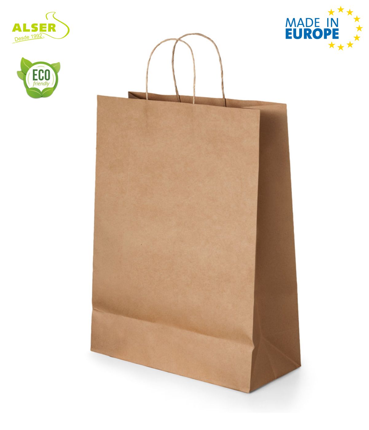 • Bolsa fabricada en papel Kraft, elegante y sostenible.