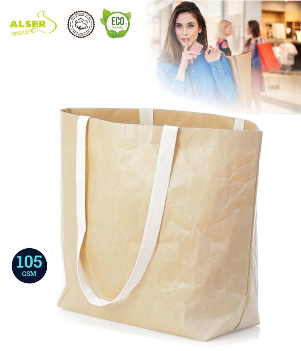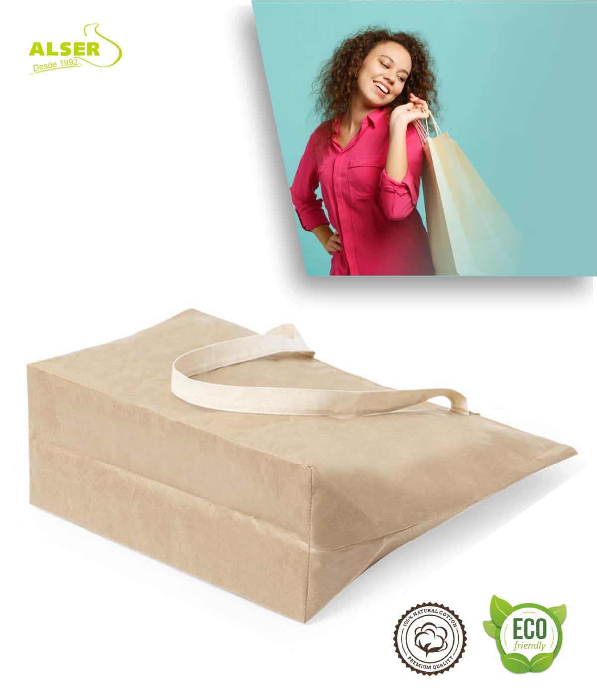 Bolsa de papel laminado fuerte y con amplia superficie para serigrafia.