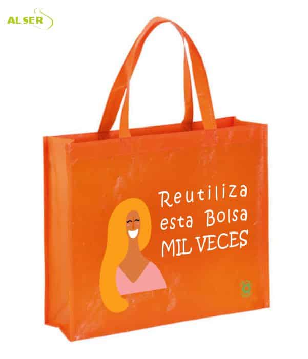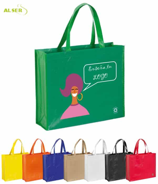 • Llamativa: 8 colores en tejido Non Woven con terminación laminada brillante. Bolsa muy llamativa para estampado de mensajes publicitarios.