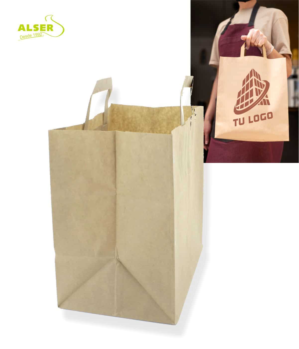 Bolsa de papel ideal para supermercados y restaurantes take away