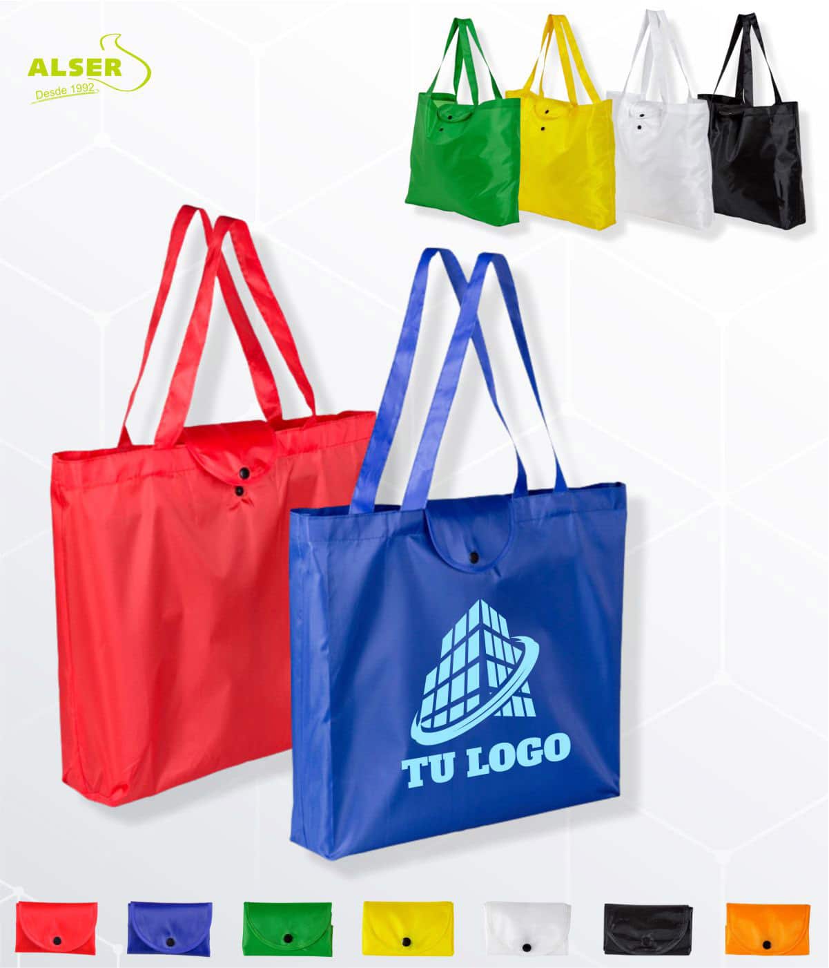 Una bolsa plegable para la compra es muchas cosas: es práctica, es reutilizable, es un gesto de sostenibilidad… pero sobre todo, es un anuncio que camina por la calle, que entra en el súper y que sale del frutero con tu logo bien visible.