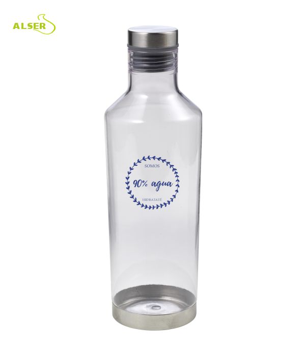 Con cuerpo de tritán libre de BPA, esta botella transparente para agua no solo es bonita: es resistente, segura, no transmite olores ni sabores y tiene un diseño limpio, sofisticado y duradero. Como el buen branding.