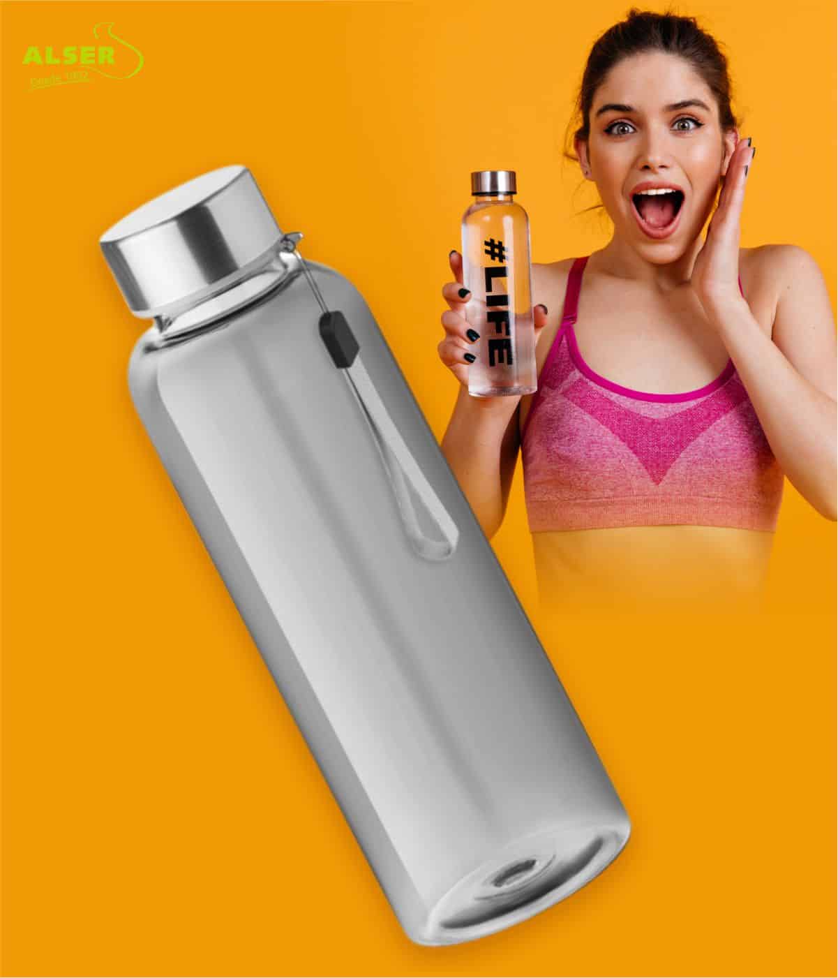 Las botellas de agua reutilizables son el material publicitario imprescindible en verano, olas de calor, eventos deportivos, festivales o cualquier ocasión en la que la hidratación sea clave. Y sí, puedes ver cómo quedará tu logo antes de pedirla: en Alser te enviamos un fotomontaje gratis.