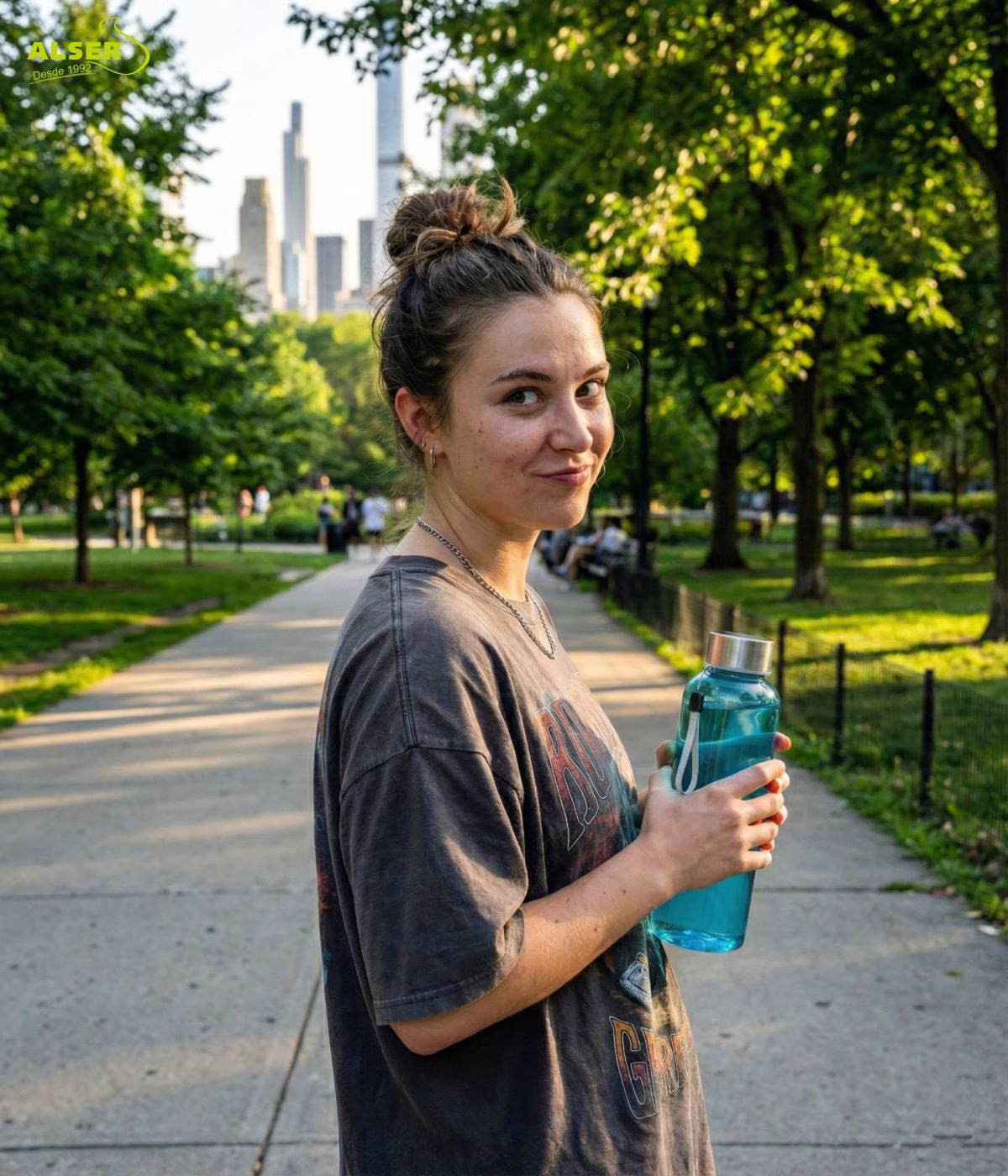 Porque es ligera y resistente, perfecta para llevar a cualquier parte. Porque no transmite olores ni sabores y se limpia fácil, incluso en el lavavajillas. Porque el tapón antigoteo es una tranquilidad y la cinta de mano es comodísima. Porque elegir color y personalizarla con tu logo convierte una botella en un regalo único de tu negocio. Y porque, sinceramente, cuando la tienes, te das cuenta de que no necesitas ninguna otra.