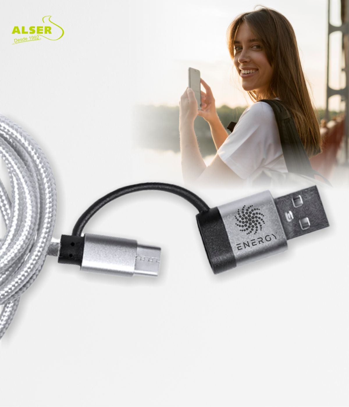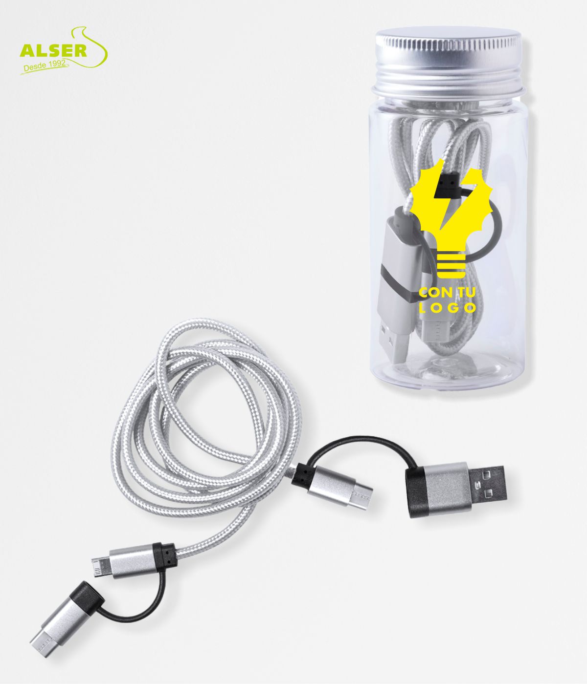 Con este cable marcado con la publicidad de tu empresa tus clientes podrán conectar sus aparatos electrónicos y recargarlos. Regalo muy útil para todo tipo de público.