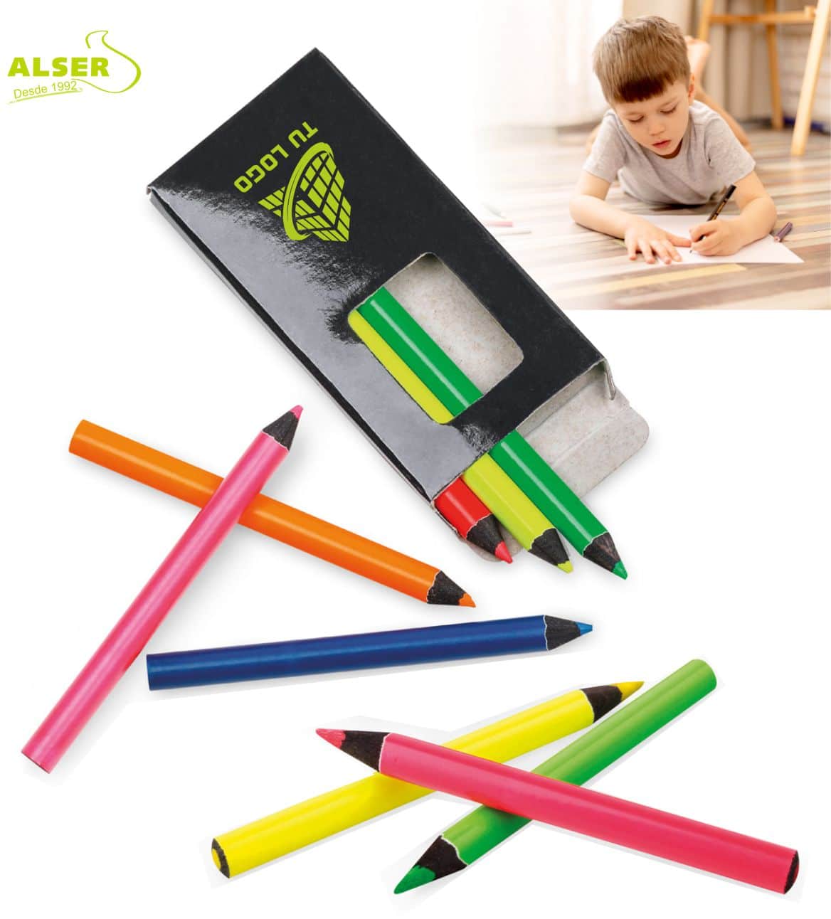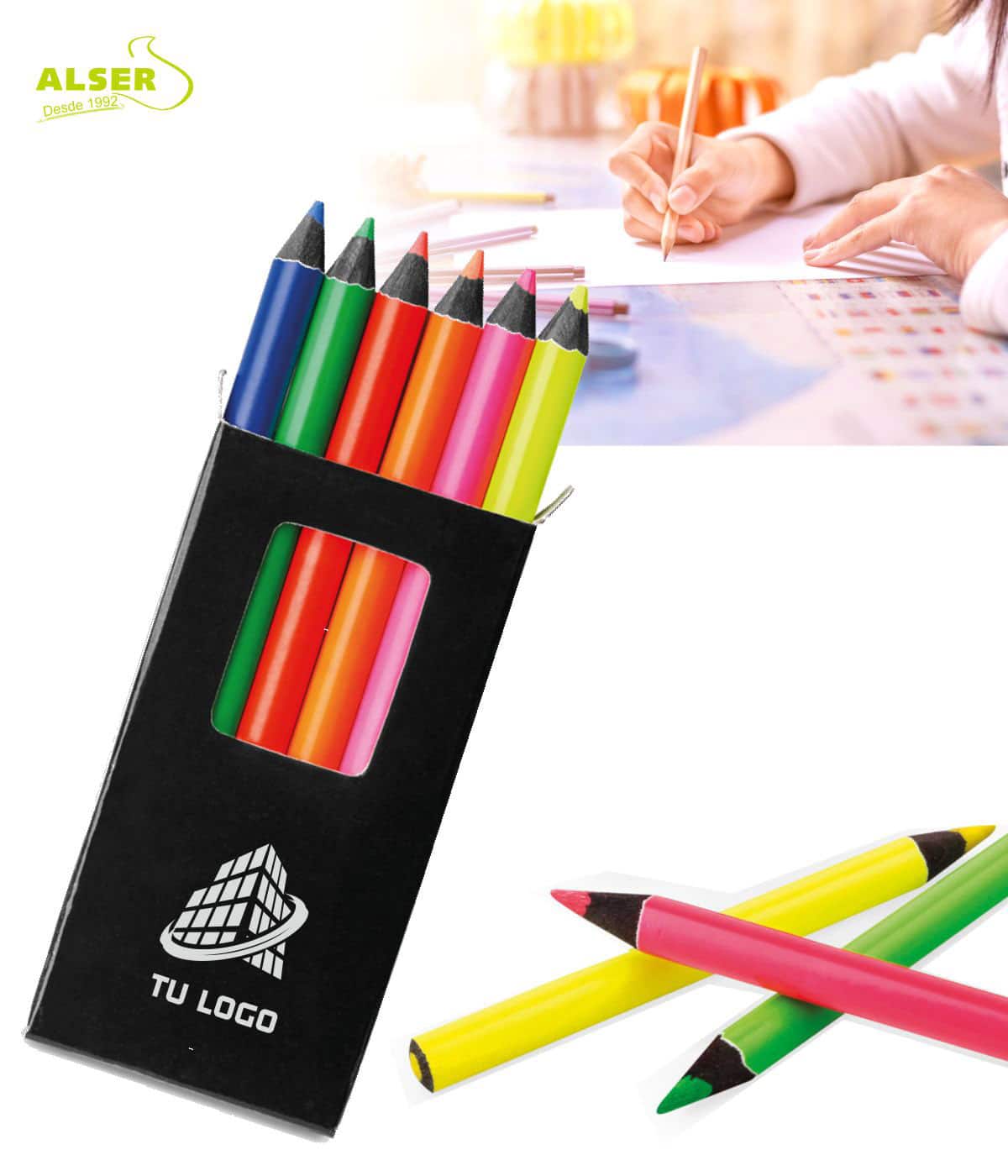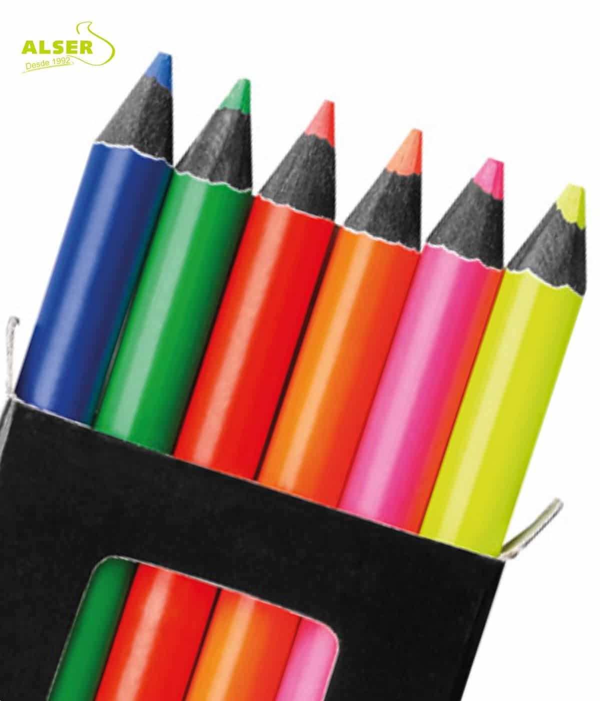 Caja con seis de lápices fluorescentes para promocionar tu marca,