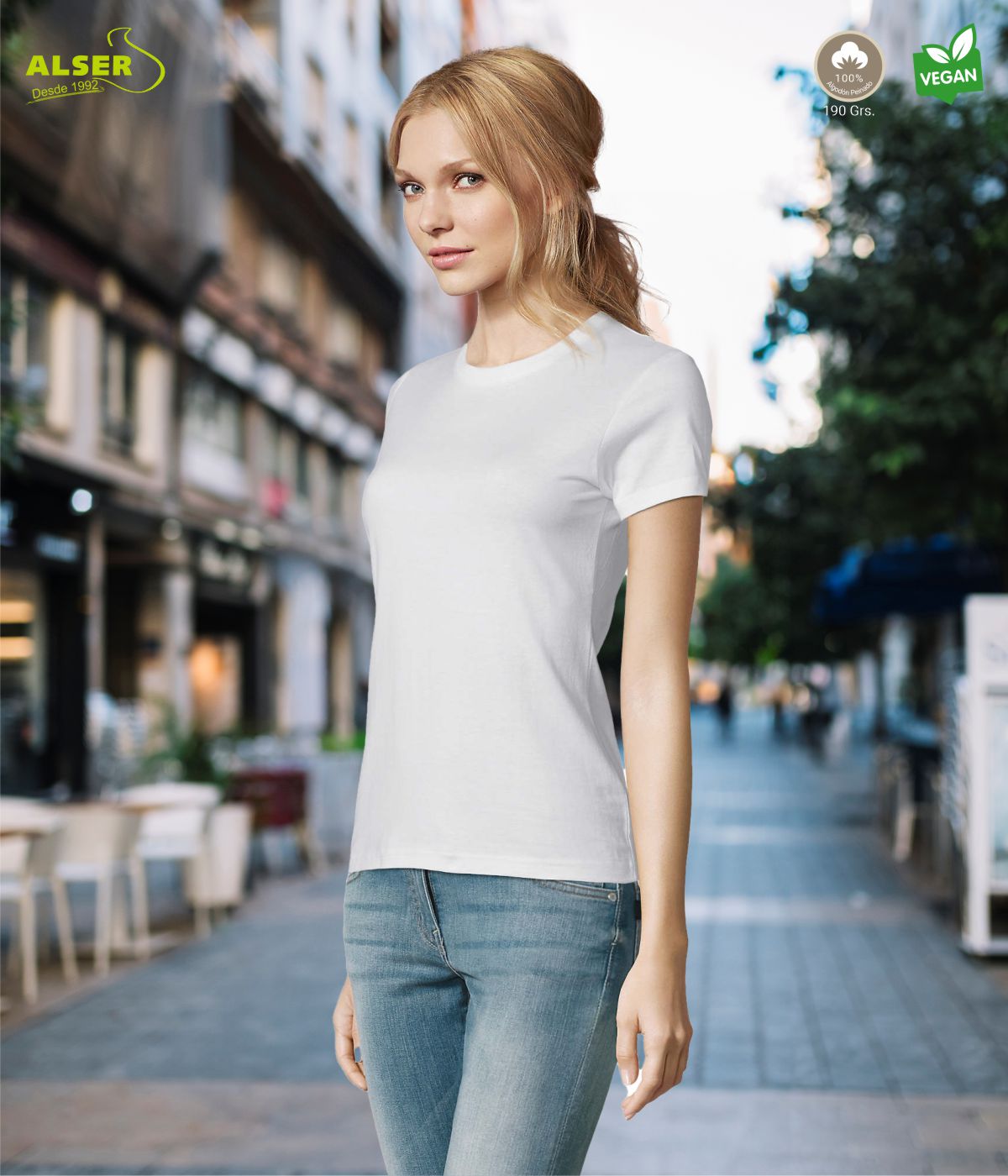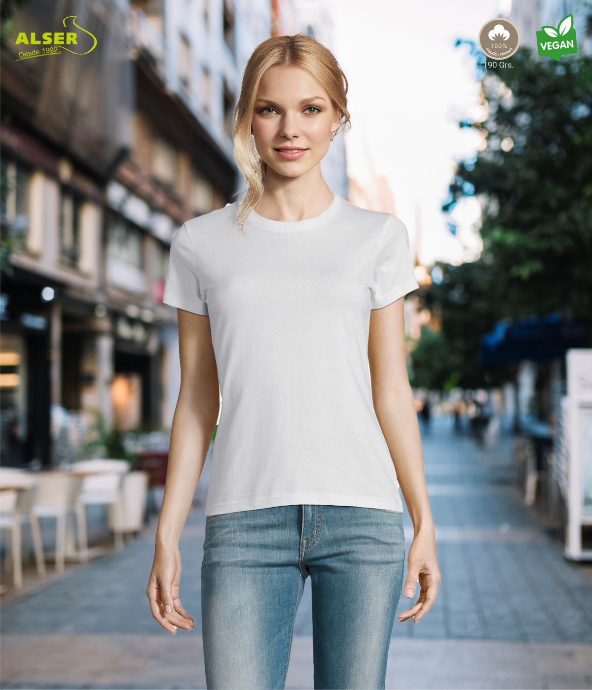 CAMISETA BLANCA ALGODÓN MUJER PARA tu publicidad