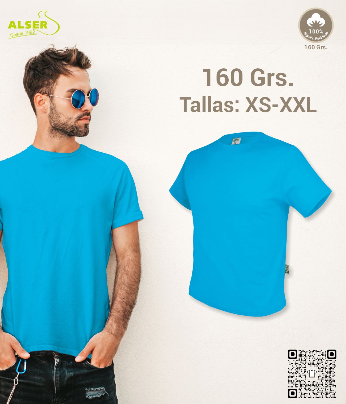 • Justo en el equilibrio: Con un gramaje de 160 grs, es la camiseta perfecta para cualquier época del año. Ni muy pesada, ni muy ligera, justo lo que necesitas.