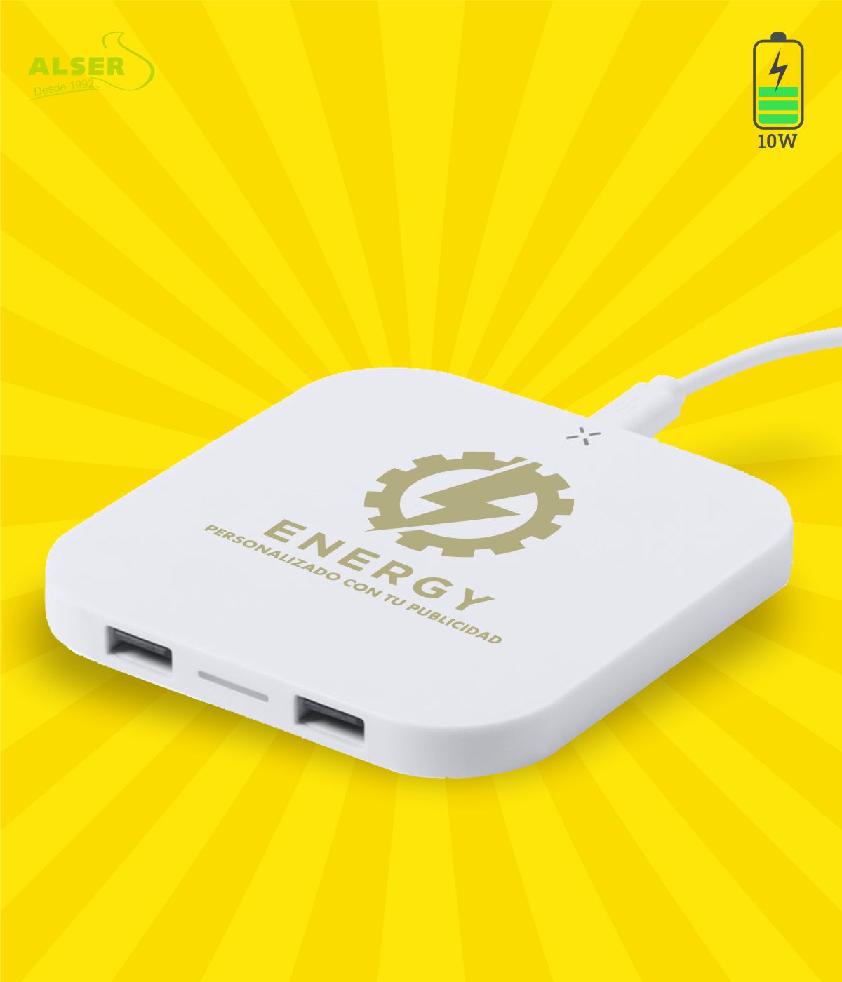 Personalizado: Su logotipo quedará impreso en el centro del cargador, su marca queda perfectamente a la vista.