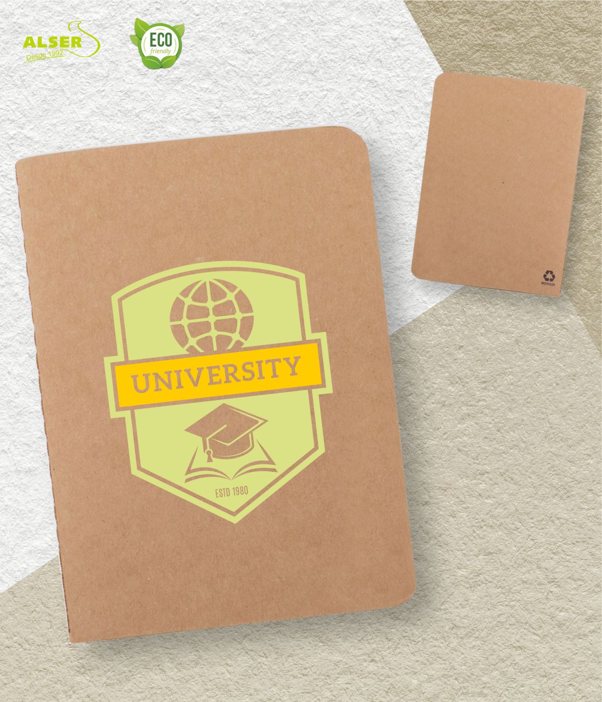 Diseñado para que tu marca esté presente en los momentos más cotidianos (y los más inesperados), este cuaderno es un detalle económico, útil y sostenible. Fabricado en cartón y papel reciclado, con lomo cosido y tapas en color marrón kraft, es una elección responsable con el planeta y con tu presupuesto.