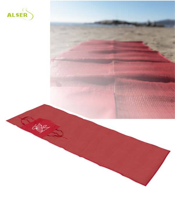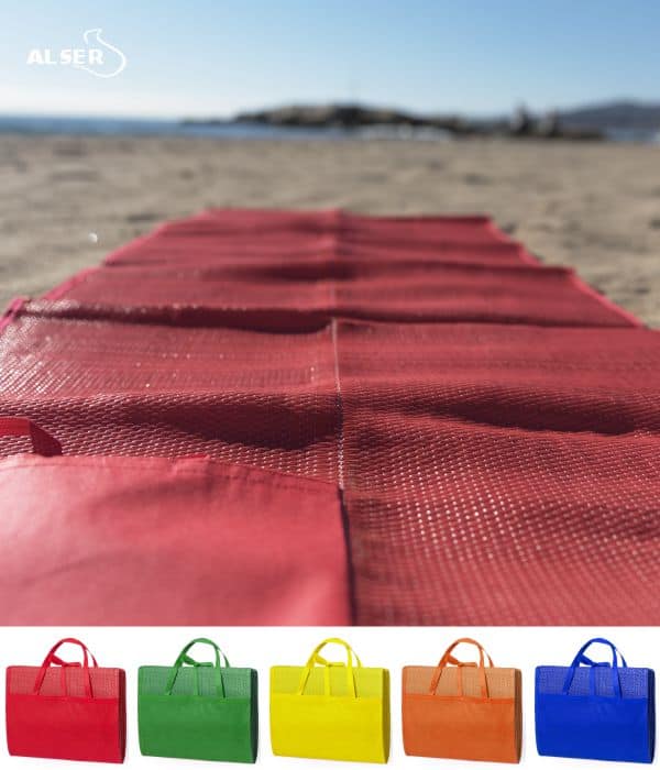 Esterilla de playa plegable en PP trenzado de alta resistencia.