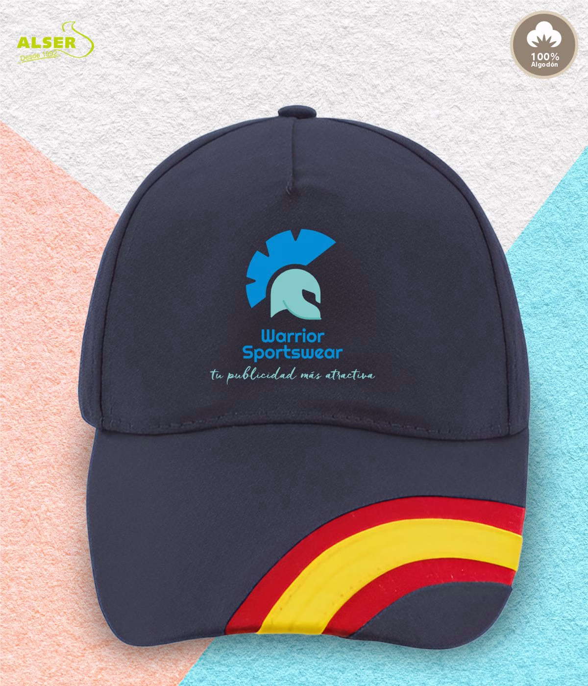 Porque transmite mucho con muy poco. Porque tiene presencia, pero sin perder la funcionalidad. Porque el detalle de la bandera en la visera marca la diferencia y porque personalizarla es tan fácil como acertar. Es una gorra que se nota, se usa y se recuerda.