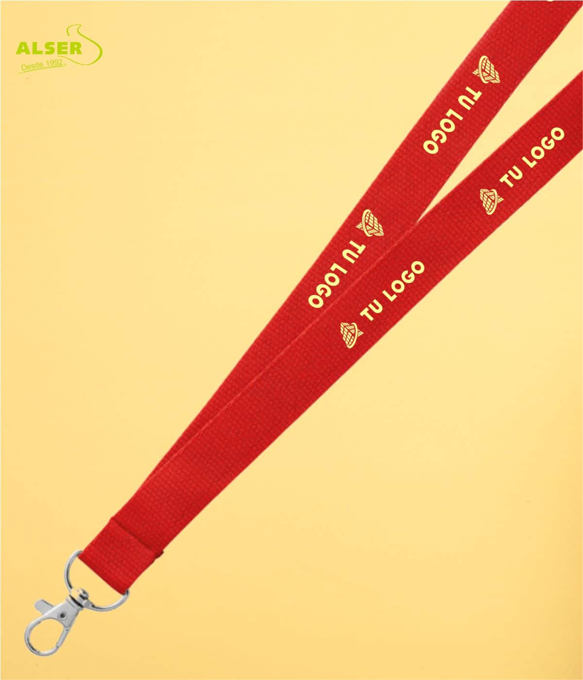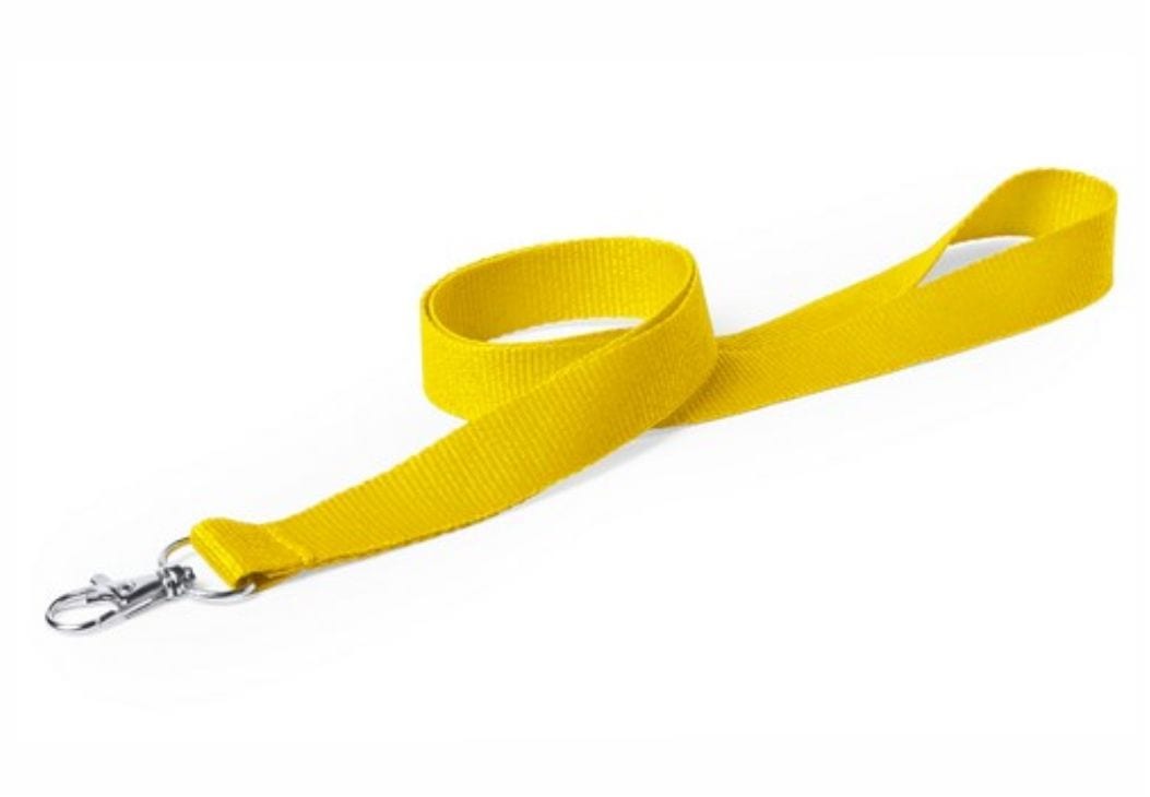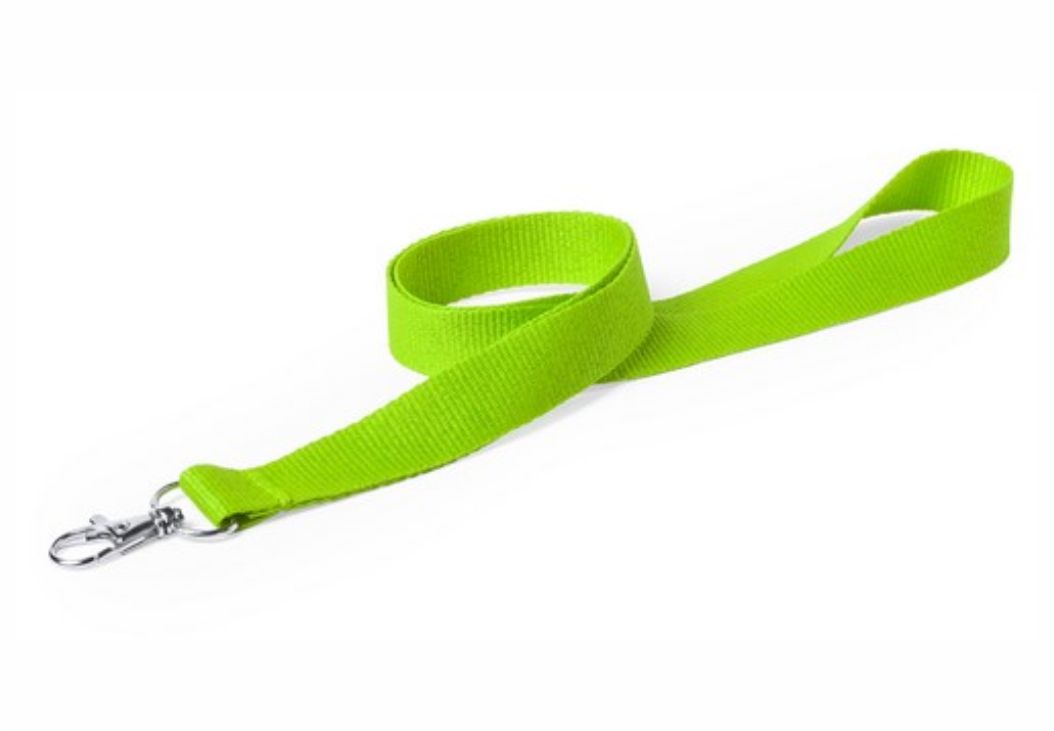 Original lanyard en resistente poliéster en vivos colores con cierre de mosquetón metálico.