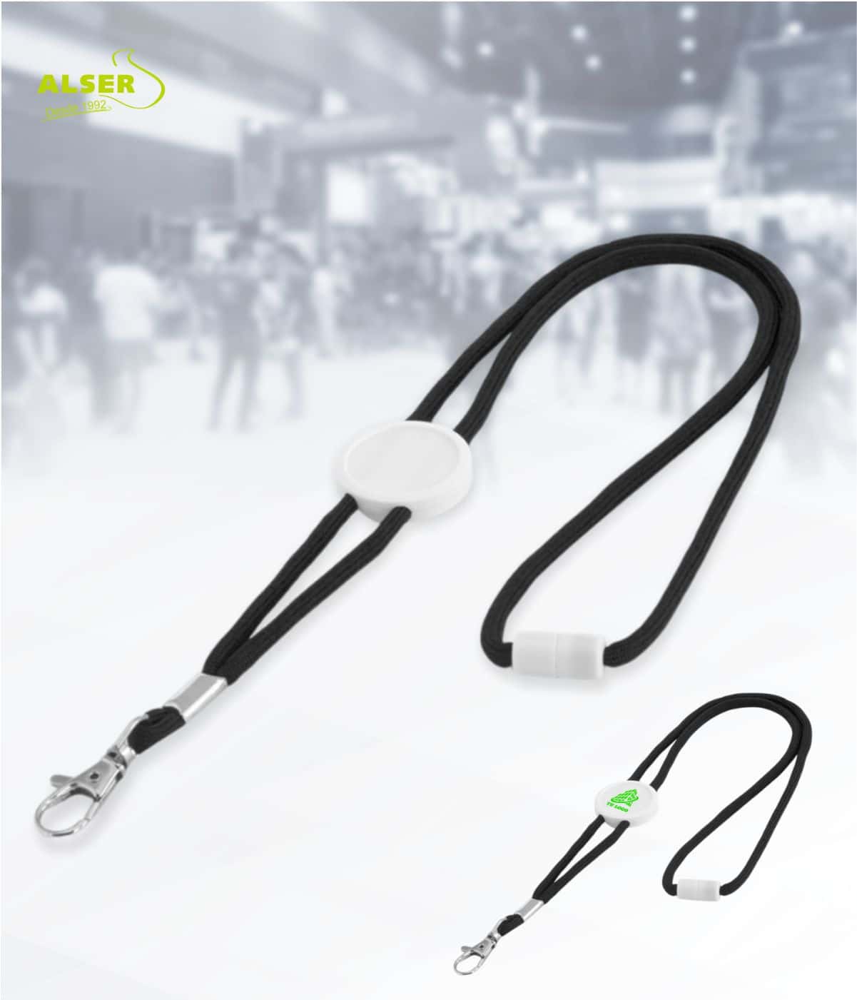 Lanyard para eventos con accesorio deslizante personalizado.