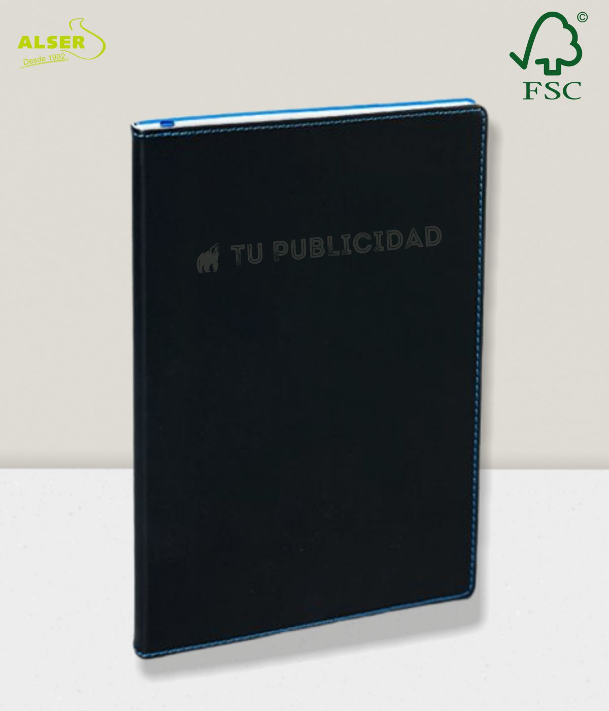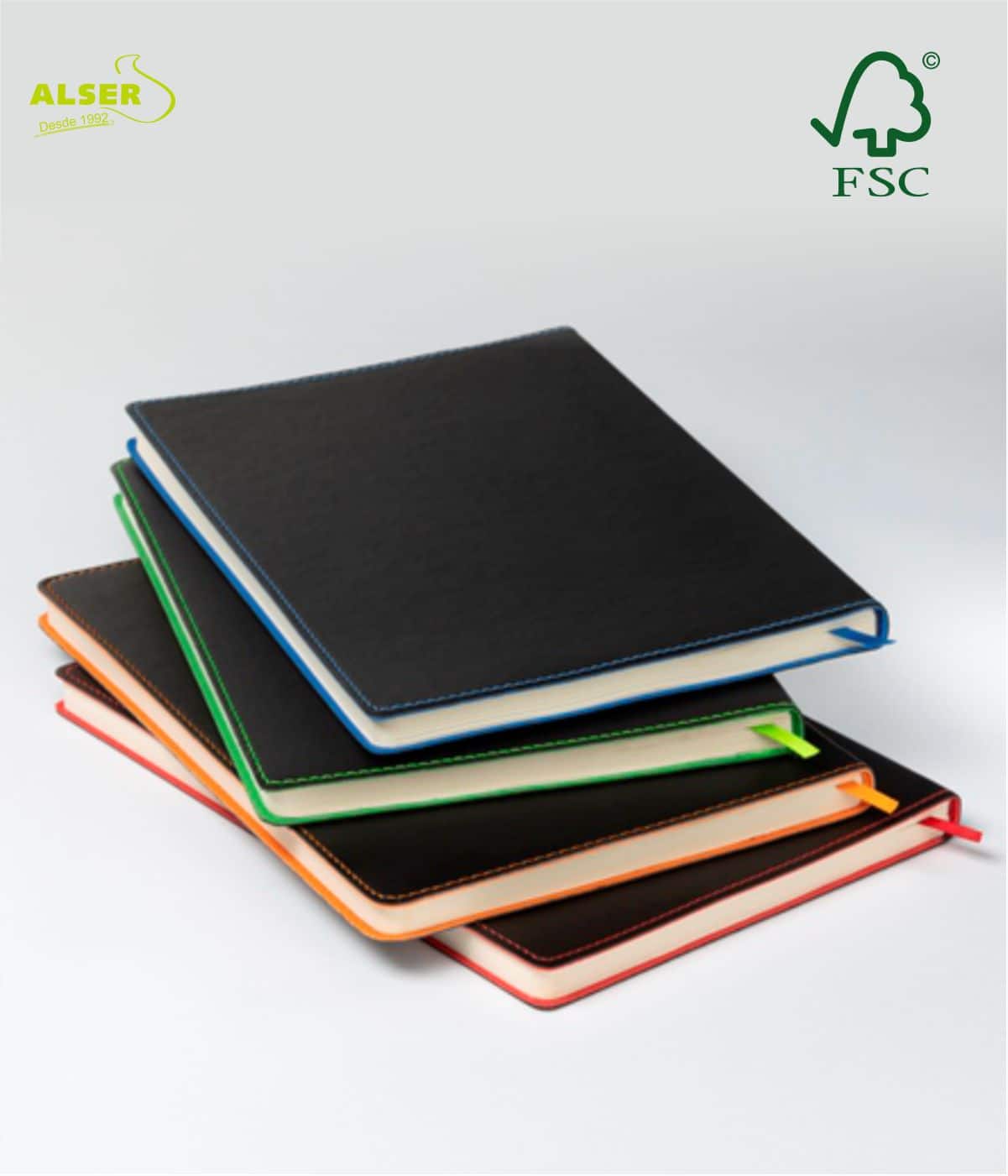 La elegancia de esta libreta, a la que suma alegría sus detalles en color, la hacen muy vistosa para cualquier empresa o evento.