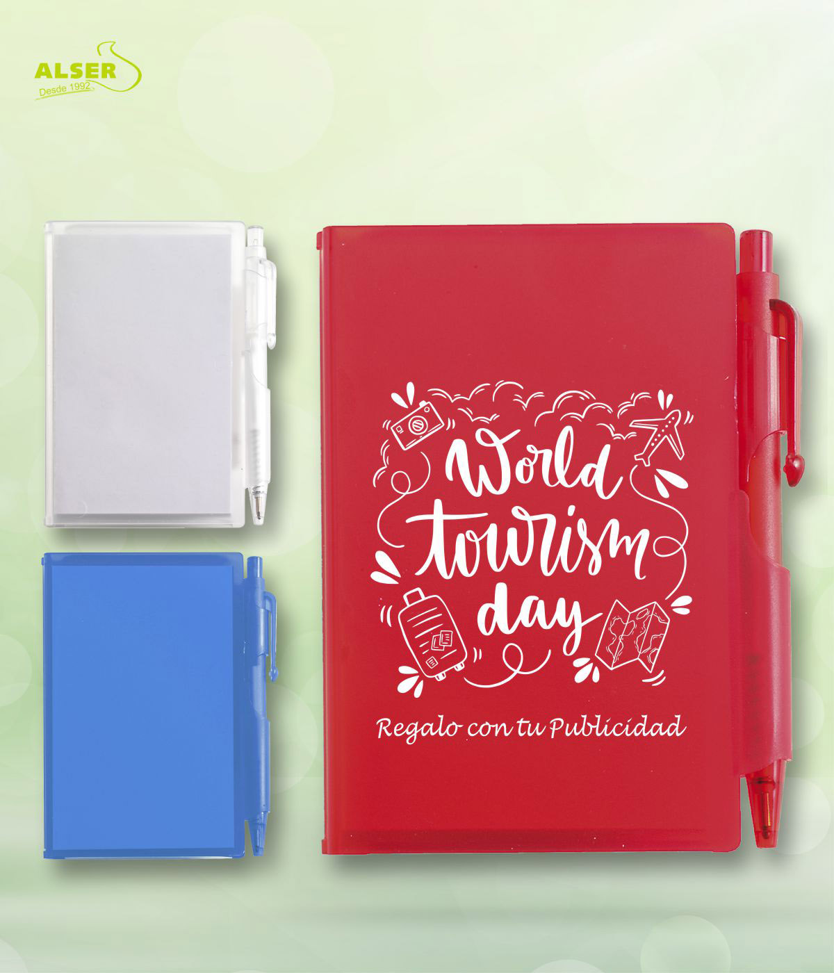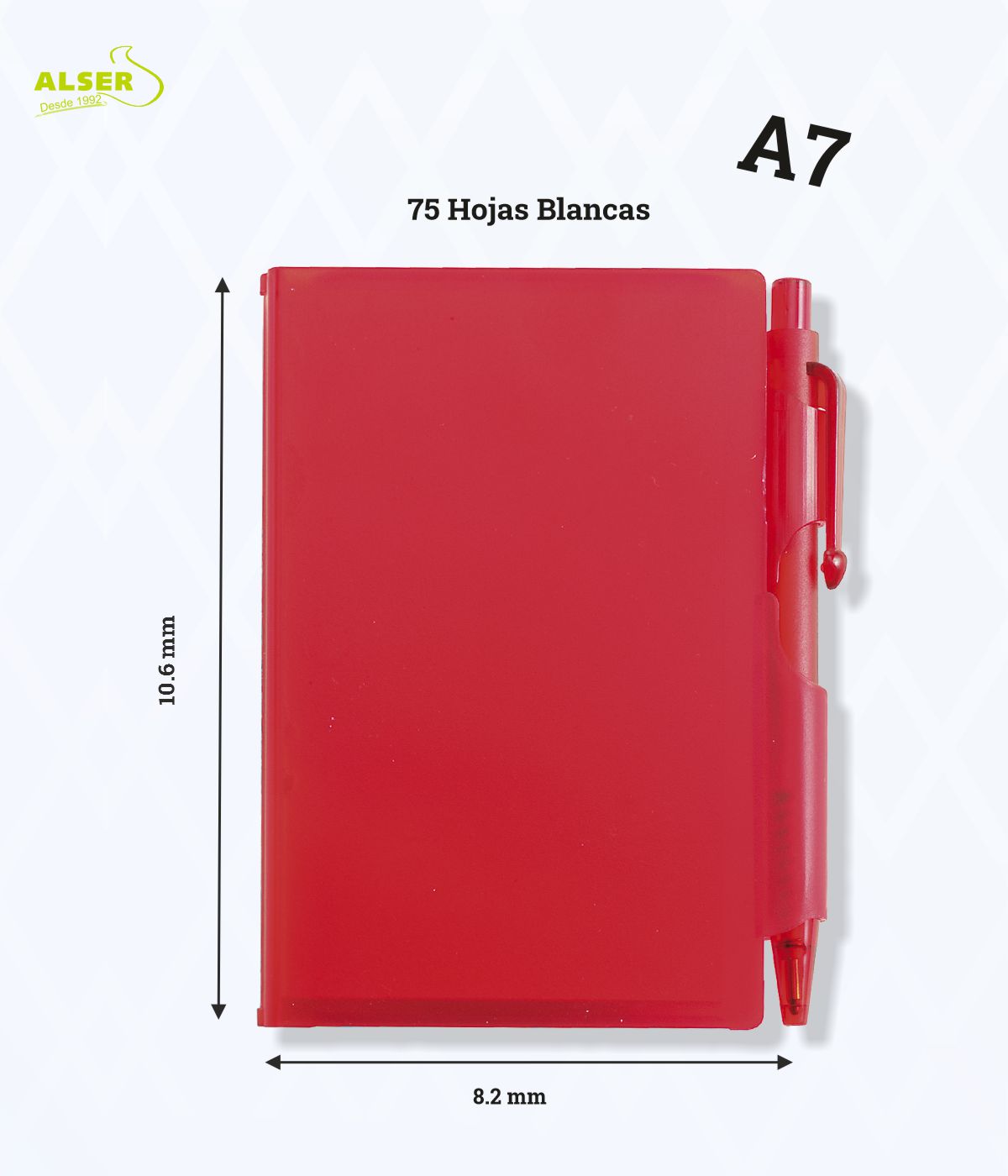 La libreta compacta, con estructura de plástico duro, es perfecta como merchandising publicitario para que tus clientes lleven tus datos siempre consigo.