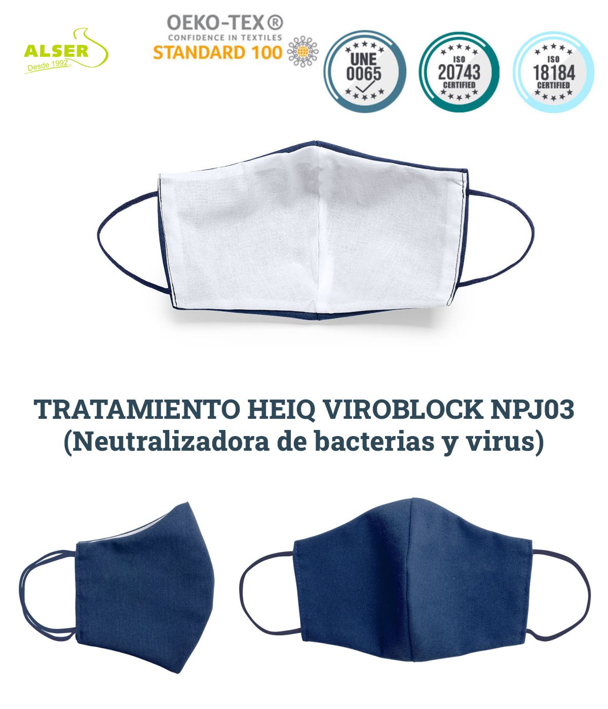 • Mascarilla antimicrobiana de alta efectividad frente a virus y bacterias gracias a su tecnología HeiQ Viroblock NPJ03.