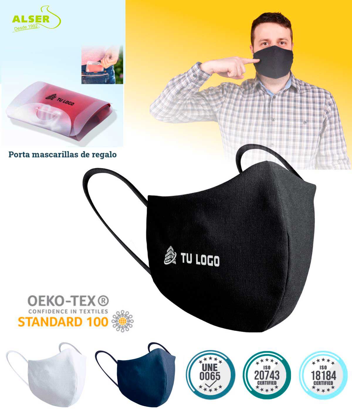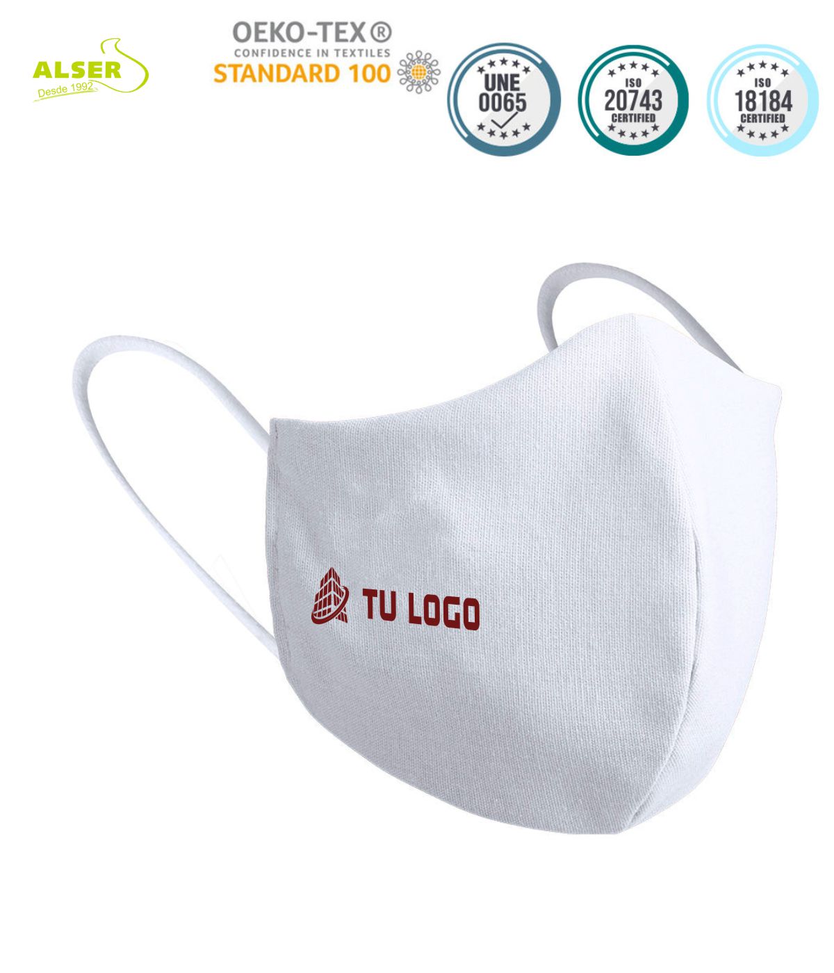 Personalízala con tu logo y aumenta el reconocimiento de tu negocio con la mascarilla reutilizable más segura.