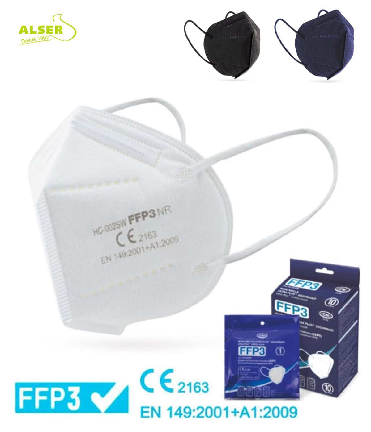 puedes comprar la mascarilla ffp3 en azul, blanco, negro o pedirlas surtidas