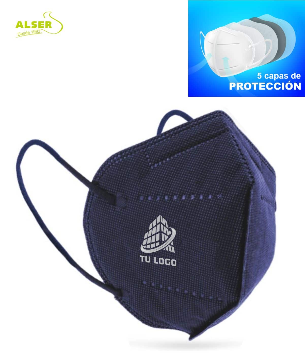 Las mascarillas FFP3 también podemos hacerlas corporativas, personalizarlas con el logotipo de tu empresa o tu negocio a partir de solo 100 und.