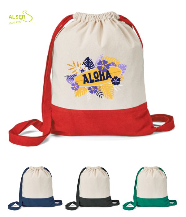 La parte inferior y los detalles vienen en colores con personalidad: Azul, Negro, Rojo o Verde. Combinan con el cuerpo natural del algodón y le dan ese rollo moderno que se agradece. Además, las asas son más anchas de lo habitual: suaves, cómodas, y se ajustan al hombro sin clavar ni molestar. Y lo mejor: al tirar de ellas, la mochila se cierra sola. Cómodo y práctico.