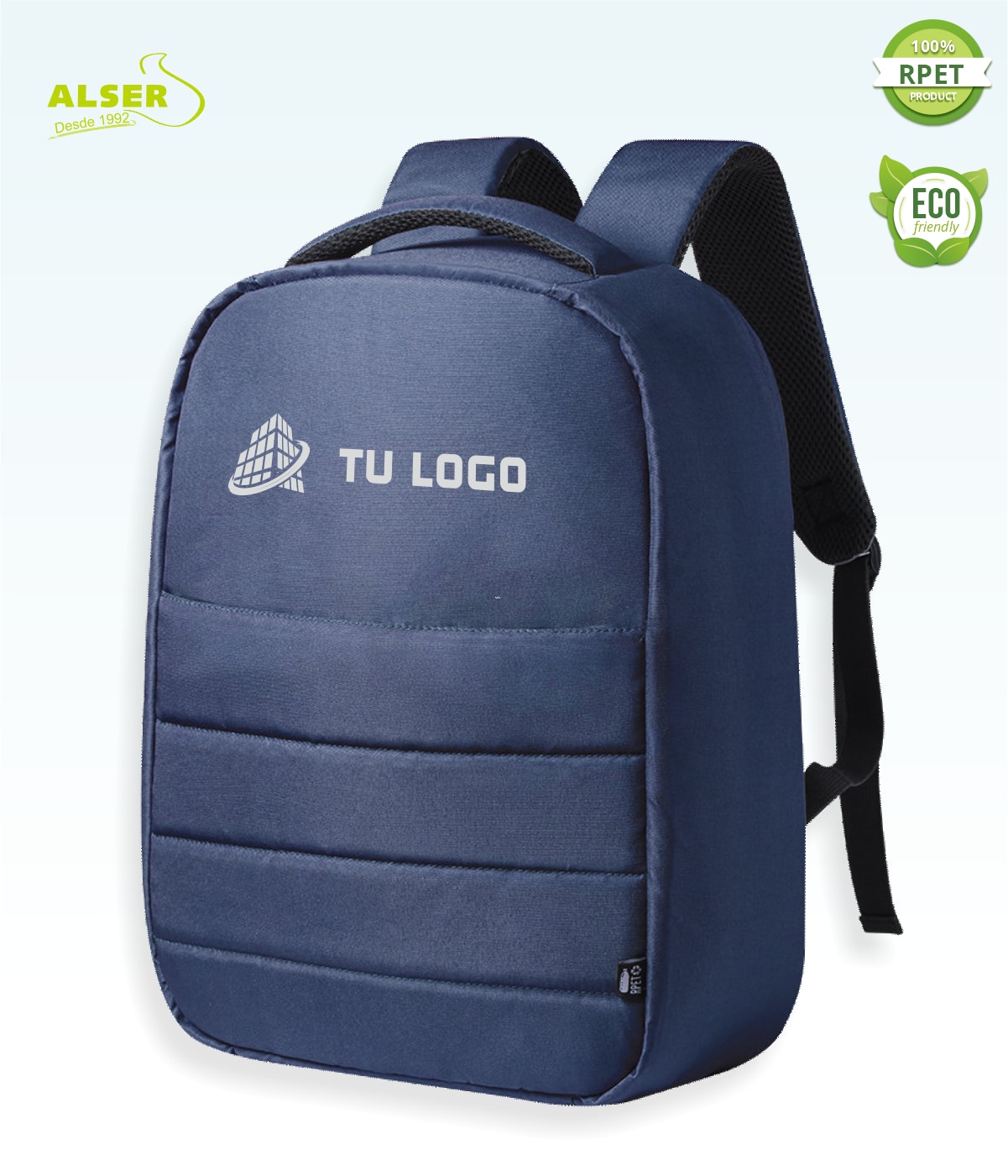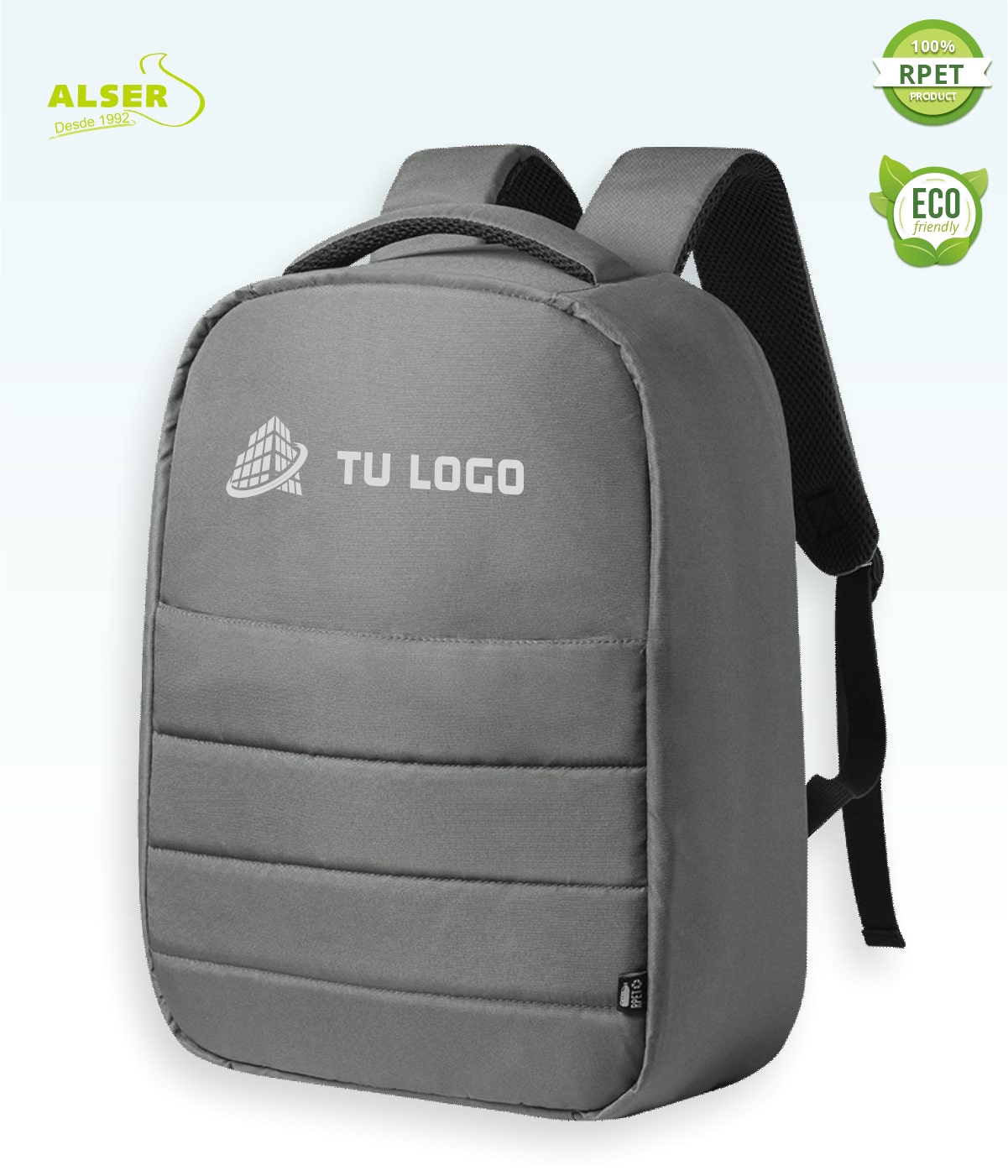 El RPET es un poliéster reciclado que aprovecha materiales que de otra manera estarían en vertederos o, peor aún, en el océano. Así que, cada vez que alguien use esta mochila, estará llevando consigo una declaración ecológica (¡y de buen gusto!). Además, puedes personalizarla con tu logo, haciendo que tu marca se vea espectacular en cualquier lugar.
