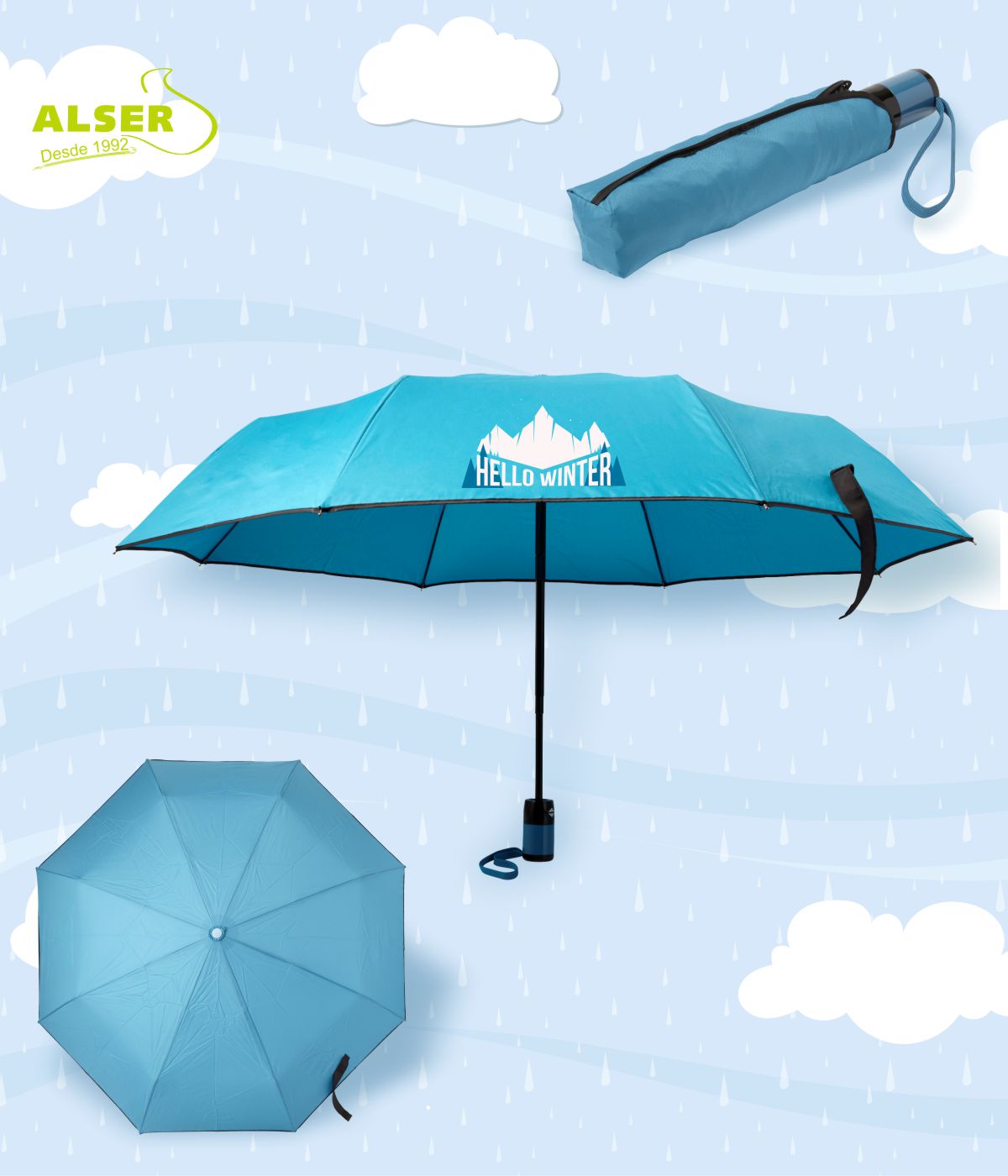 Dicen que los días de lluvia son grises, pero con este paraguas plegable automático tu marca es la chispa de color que cambia el panorama. Ligero, práctico y con un sistema de apertura y cierre automático que lo hace comodísimo, es perfecto para campañas publicitarias que no se quedan en casa cuando caen las primeras gotas.