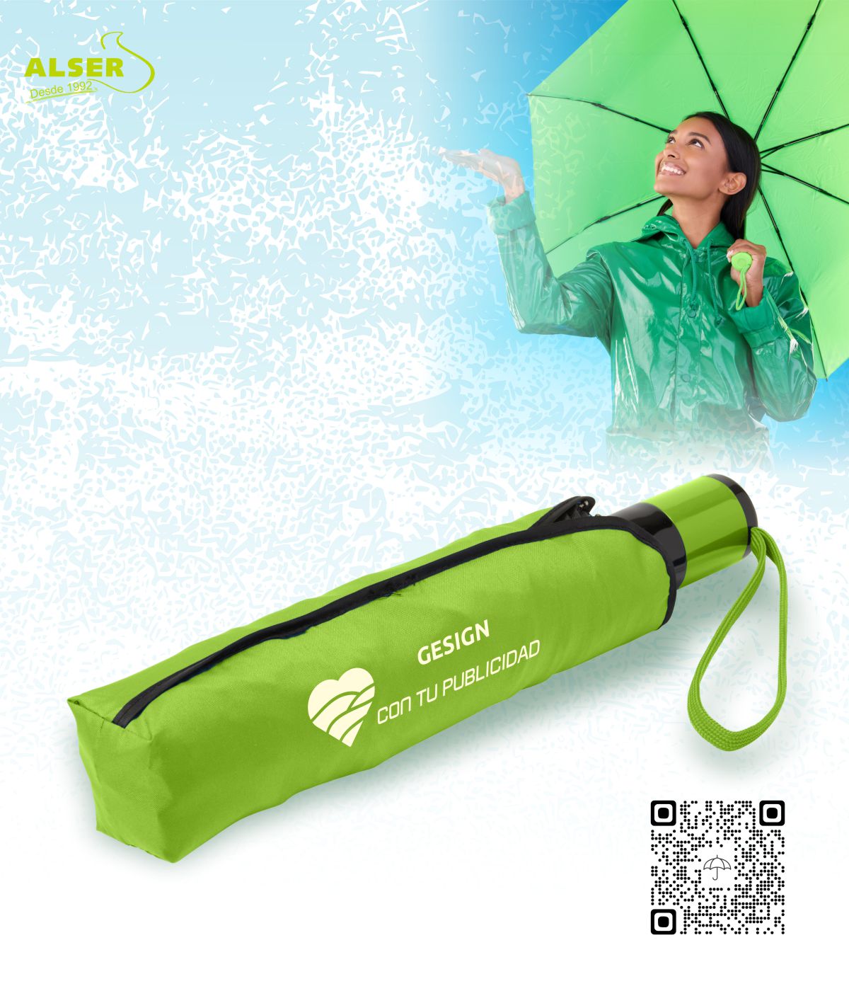 Porque es de esos regalos que salvan el día y se usan de verdad. Me encanta que con un clic se abra y se cierre, que tenga tantos colores para jugar con la imagen de marca, y que tu logo se vea enorme mientras protege de la lluvia. Además, se guarda fácil en la mochila, así que nunca molesta. Es un producto redondo: útil, resistente y con un toque de estilo que da gusto sacar en público.