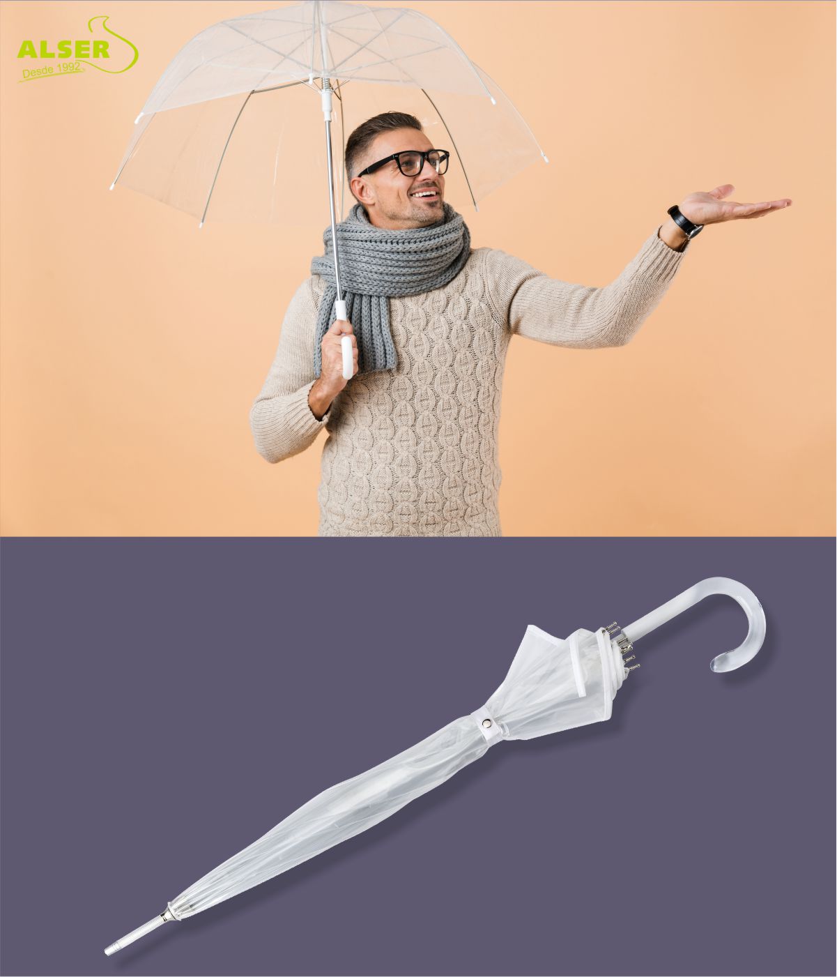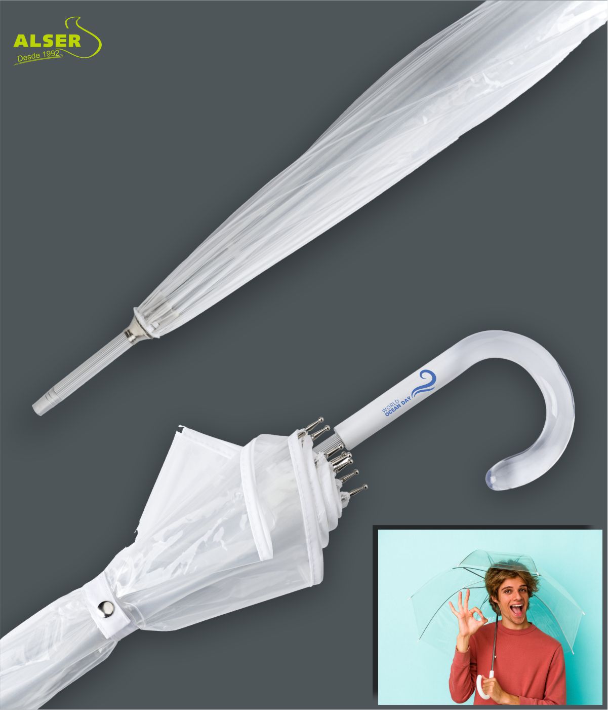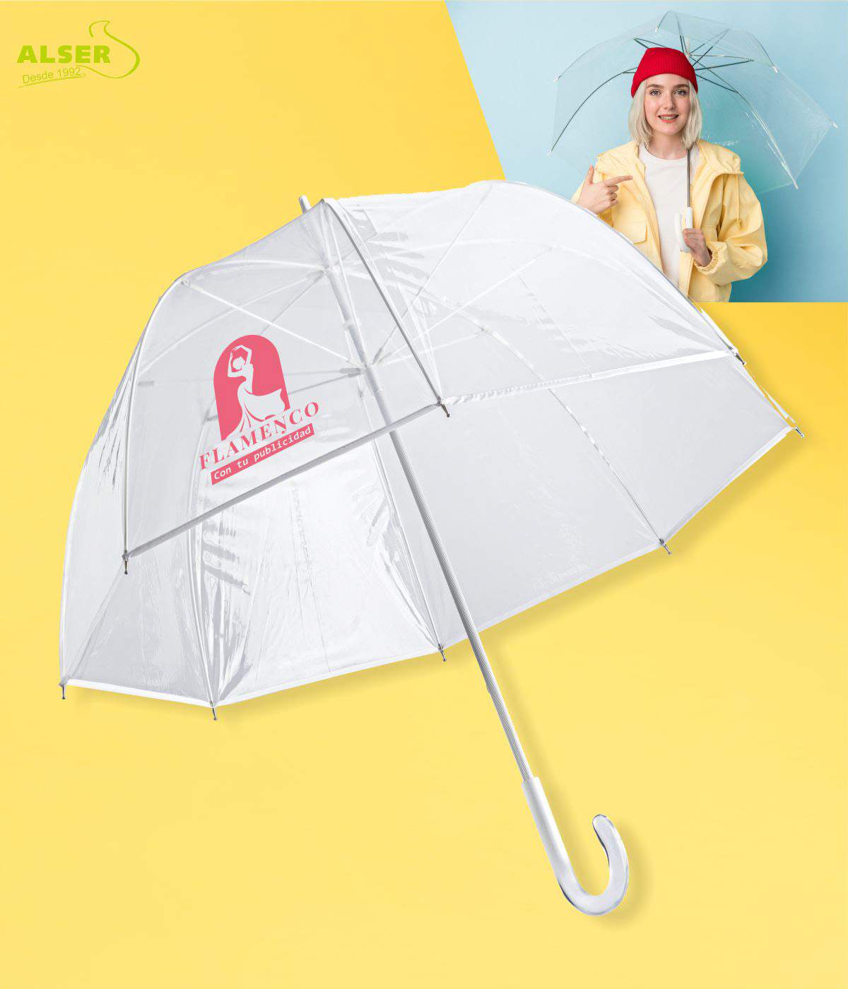 Si estás buscando un regalo promocional a la moda que ponga una sonrisa en el rostro de tus clientes, este Paraguas Transparente Campana es la respuesta. No importa si llueve, ¡sigue brillando bajo la lluvia!