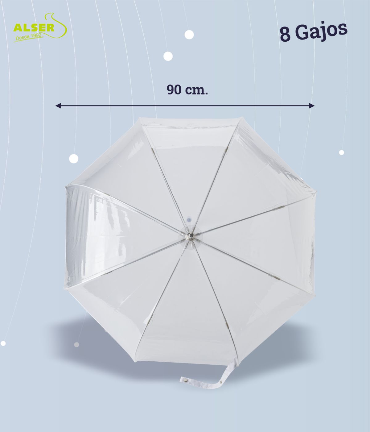 Además, no solo es transparente para seguir viendo la calle mientras andas y te resguardas de la lluvia, sino que también es resistente y duradero. Su estructura de aluminio y fibra de vidrio lo mantiene firme incluso en las ráfagas más fuertes. ¡Sin miedo, desafía al viento!