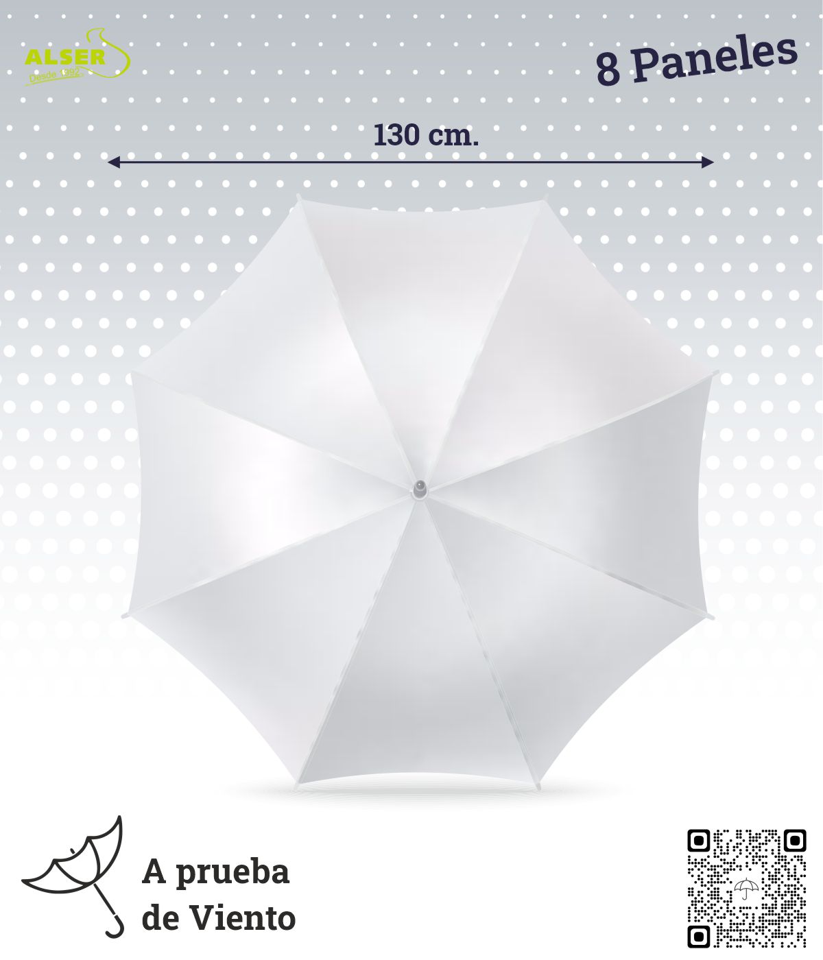 Con un generoso tamaño de 130 cm de diámetro, este paraguas no solo te protege de la lluvia, sino que también se convierte en un poderoso escudo contra las tormentas más obstinadas.