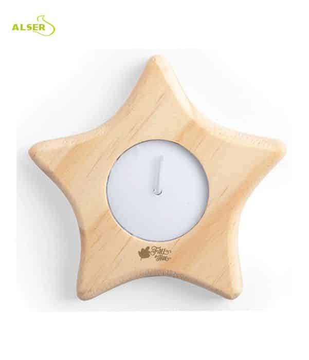 Disponible en dos modelos —estrella o pino—, este portavelas es una opción económica, ecológica y encantadora para tus regalos de empresa. Personalizable con tu logo mediante tampografía o grabado láser, es una pieza sencilla que transmite mucho.