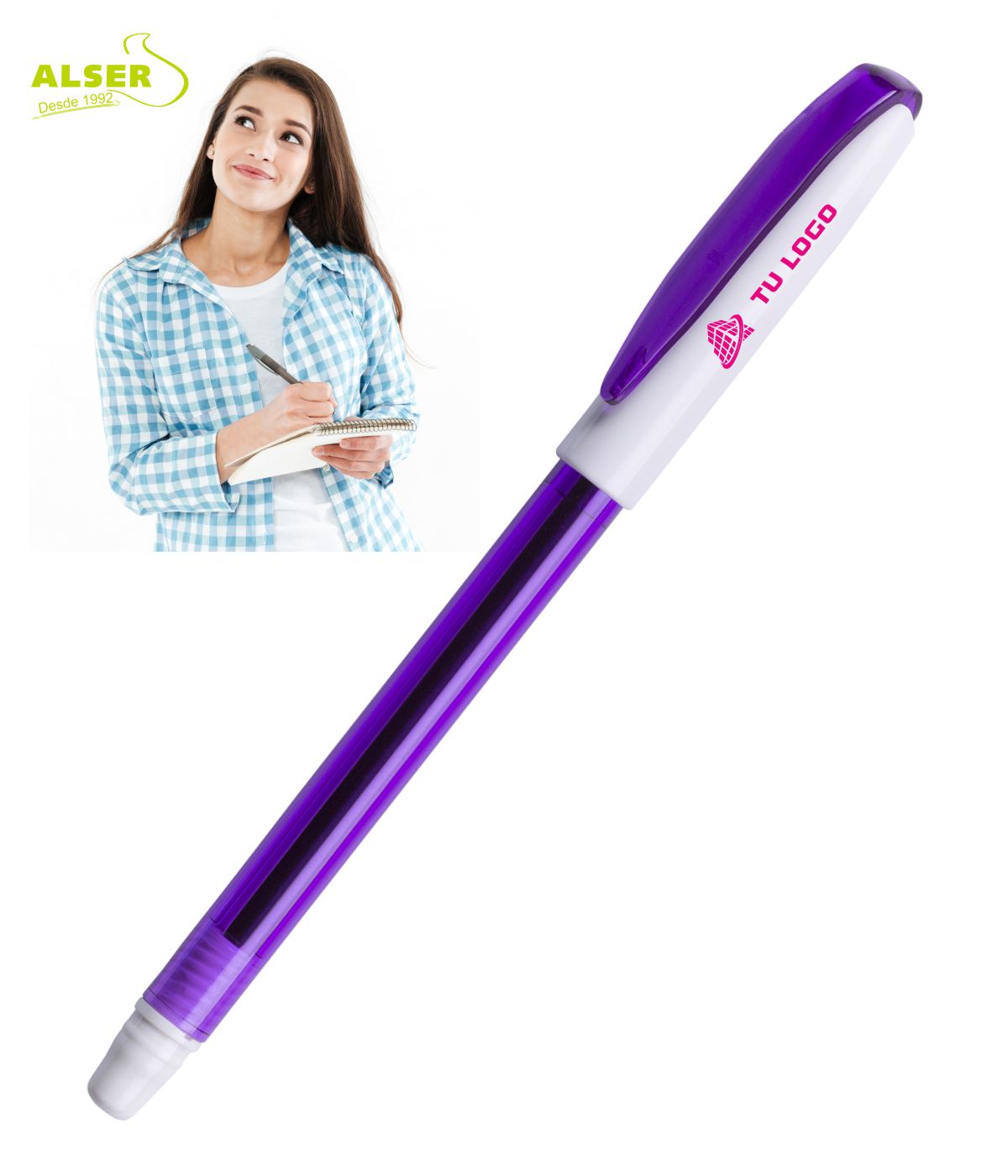 Este bolígrafo roller lo puedes personalizar con tu logotipo y tus datos desde solo 250 und. Y si lo compras al por mayor te saldrá mucho más barato.
