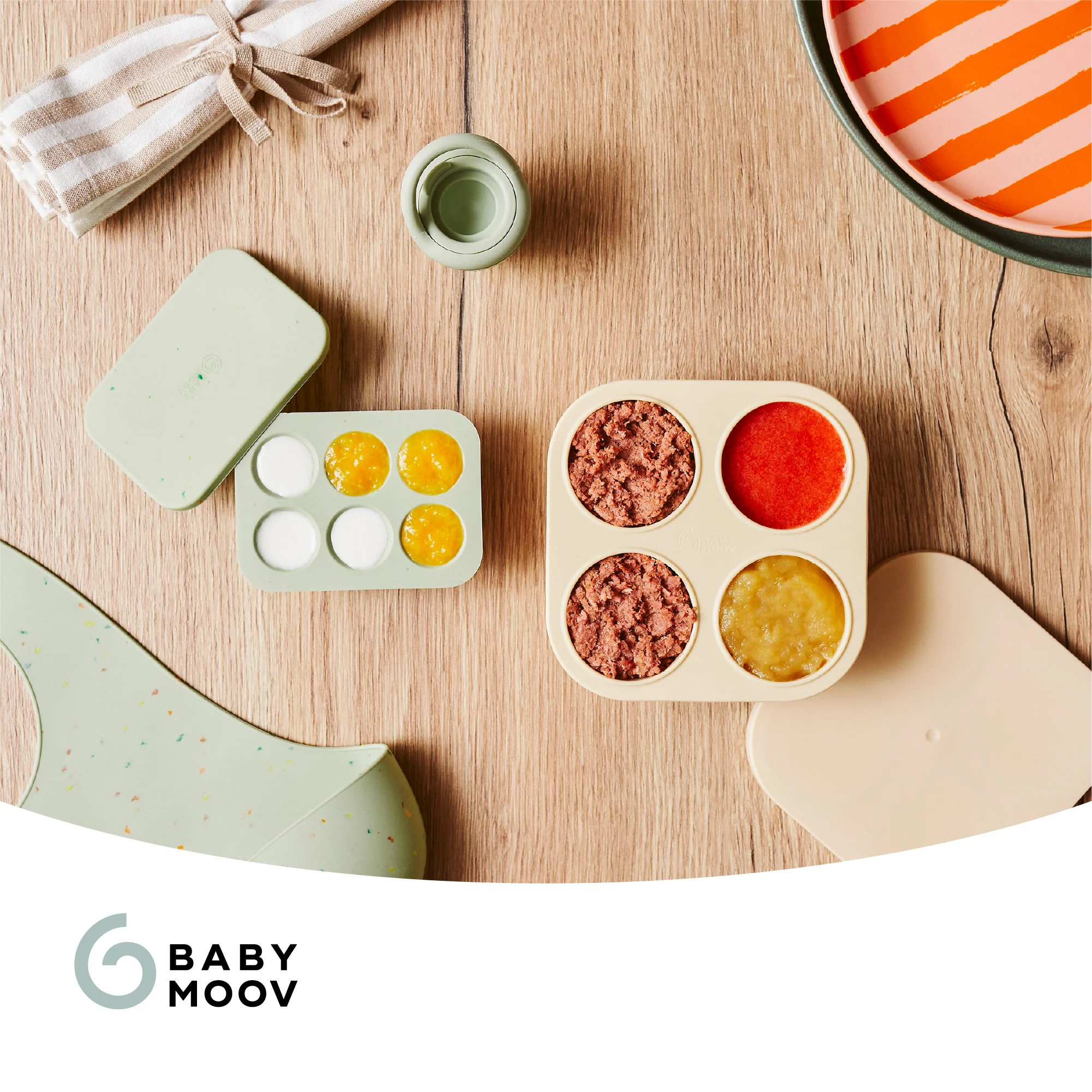 Preparar las comidas del bebé con antelación es ahora más fácil y práctico con el set de recipientes de silicona y el mordedor Babymoov.