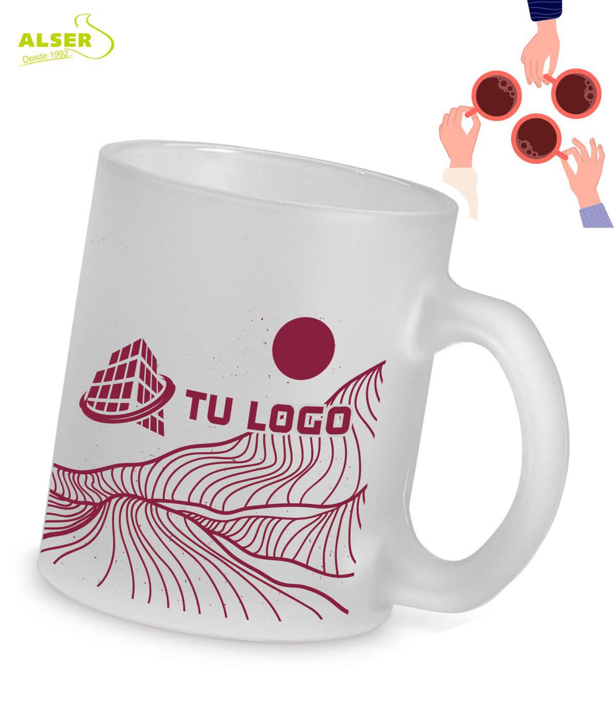 Taza de vidrio esmerilado para imprimir con tu marca